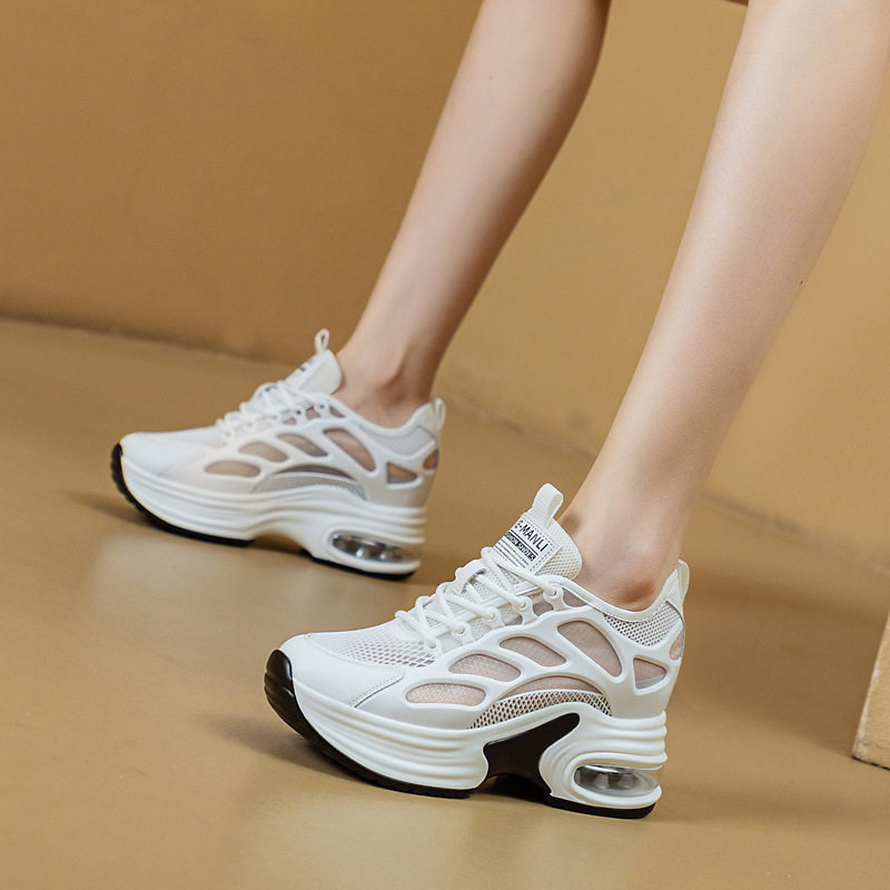 8cm内增高运动鞋女款2025新款夏季女鞋网面透气薄款休闲小白鞋女