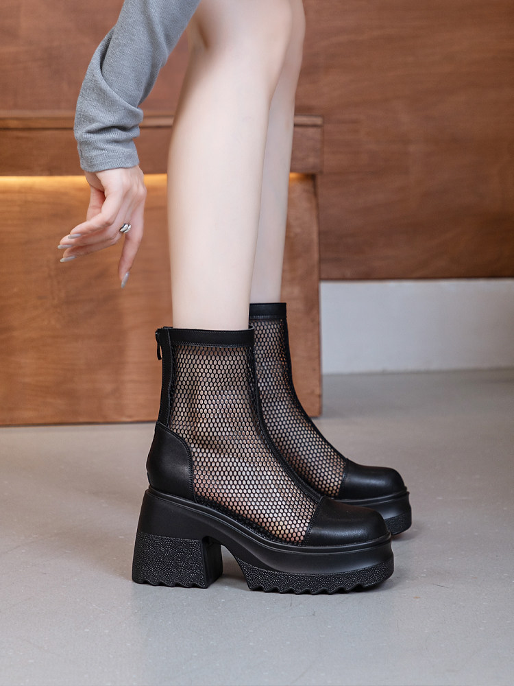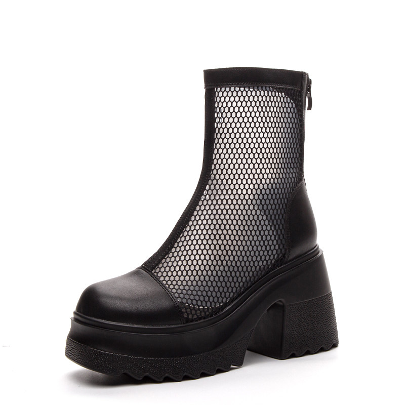 网面凉靴女2026新款夏款松糕厚底高跟靴子女款薄款透气短靴夏天