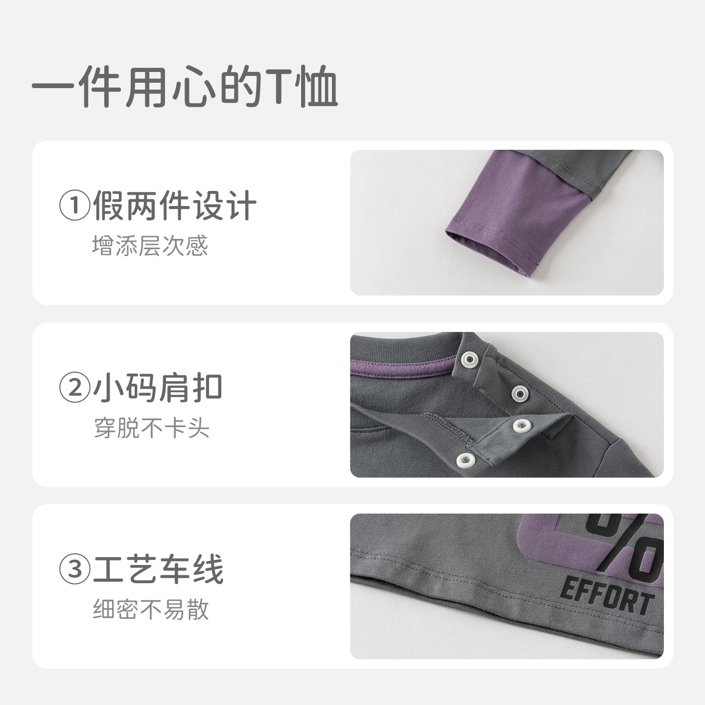 迪士尼IP戴维贝拉男童假两件拼色长袖T恤2026春装新纯棉米奇上衣