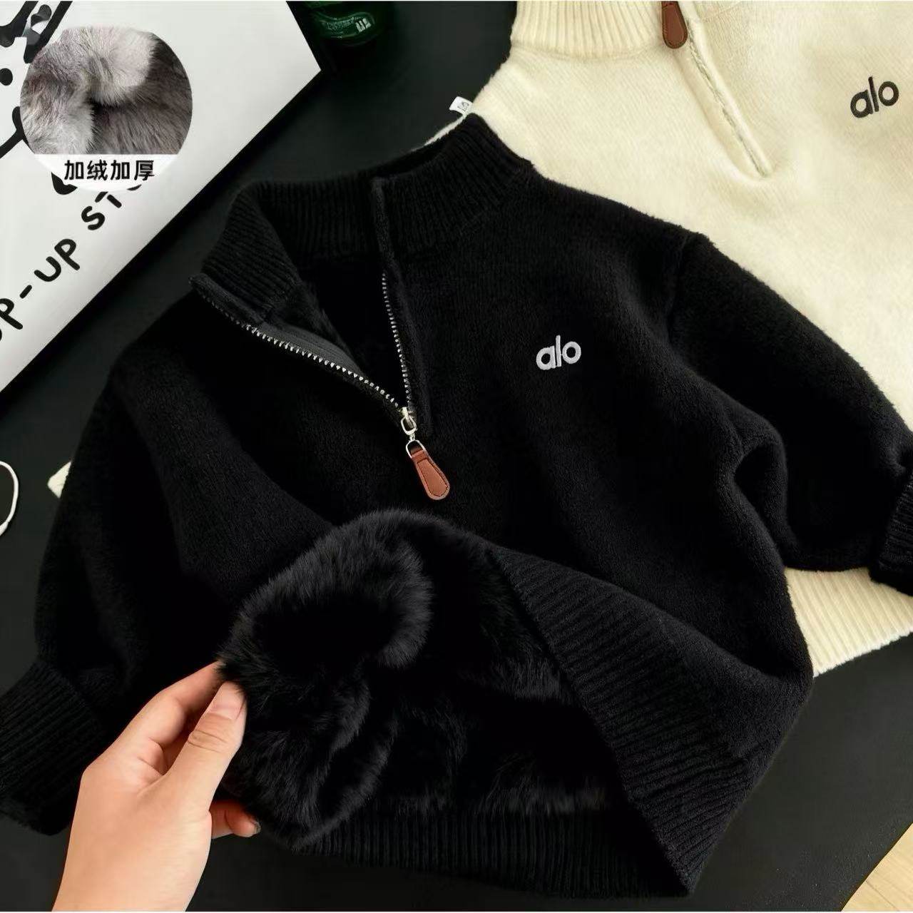 2025儿童毛衣男童加绒冬季款中大童半拉链针织衫宝宝一体绒套头衫