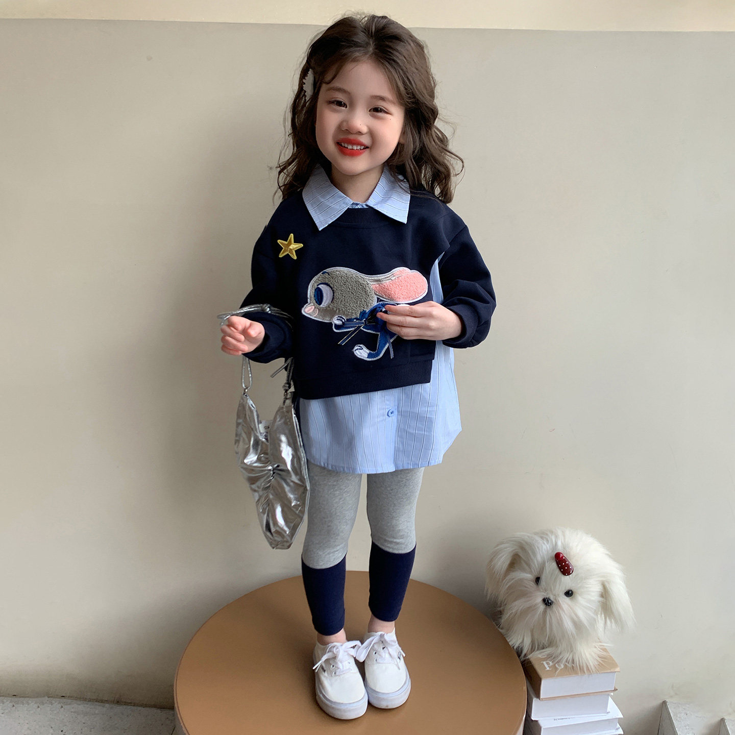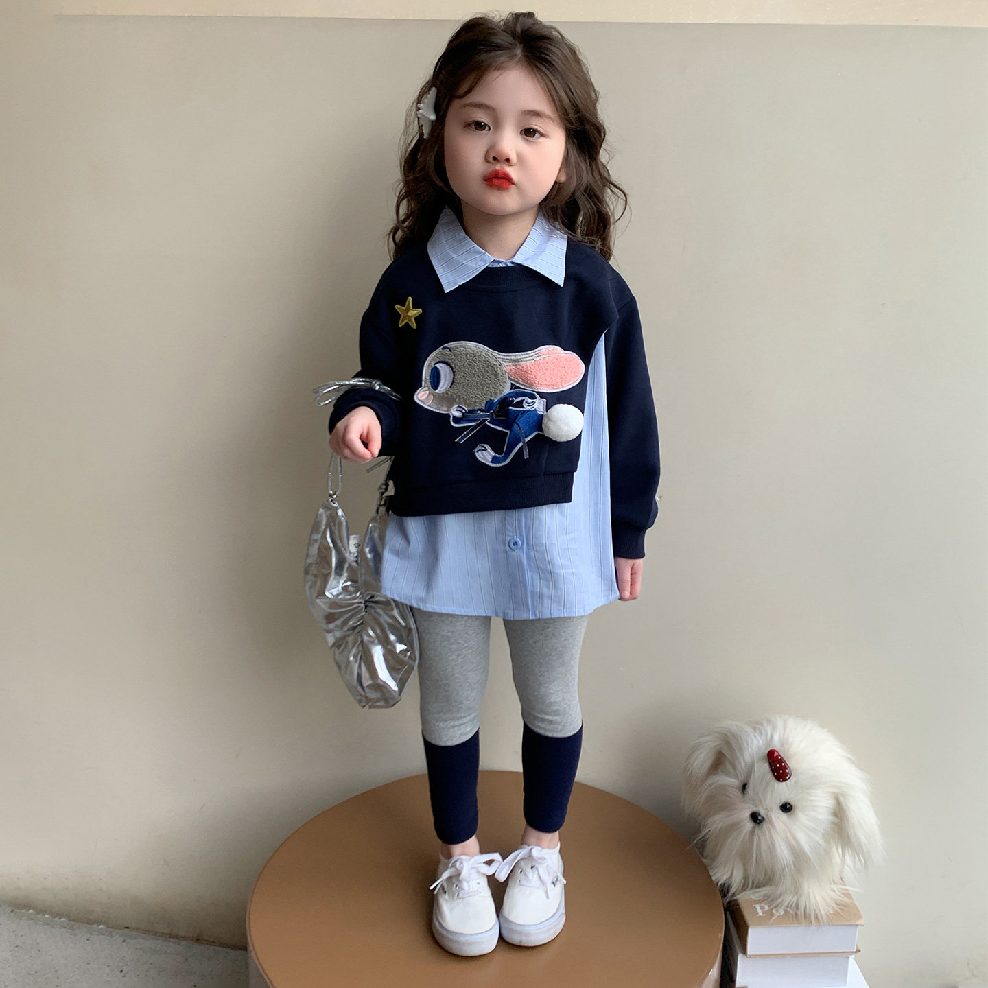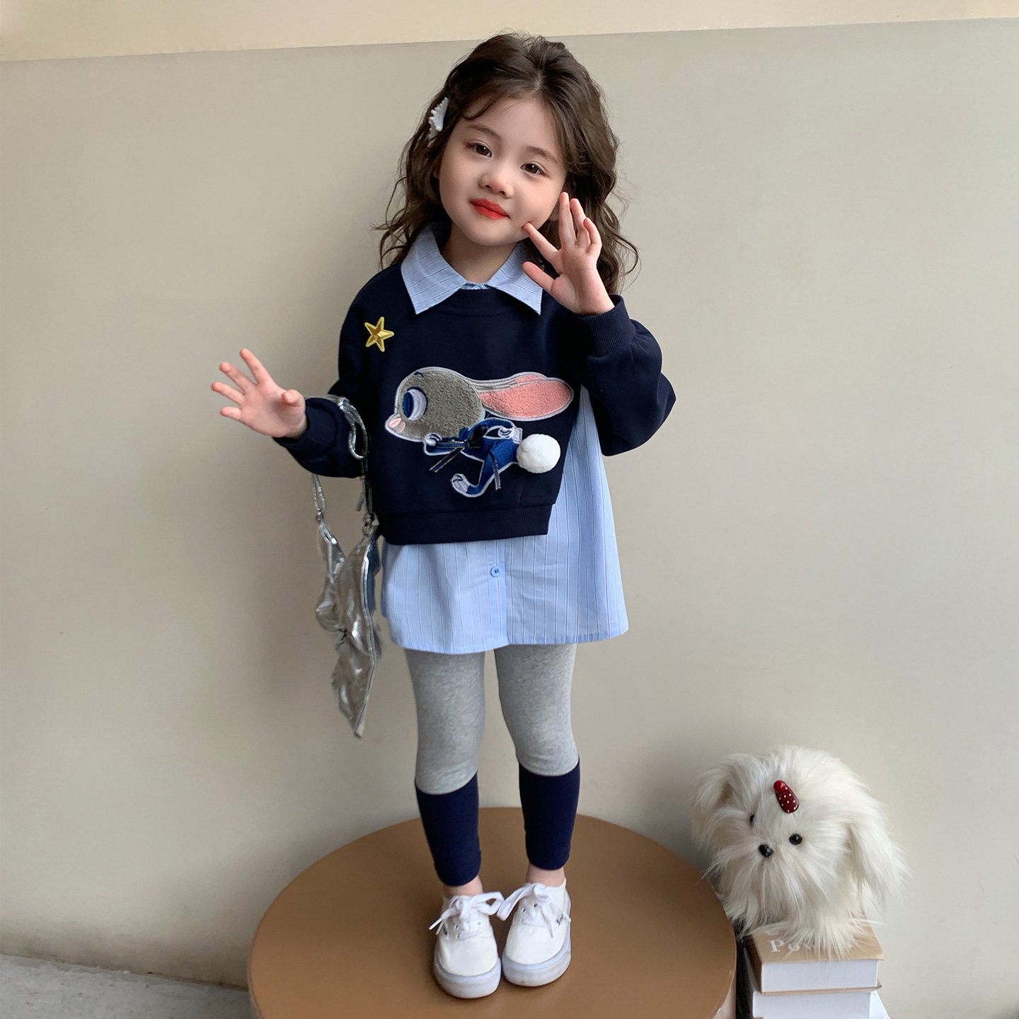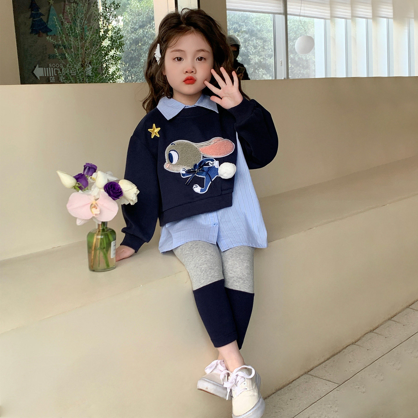 女童春秋款蓝兔套装2026新款洋气时髦儿童女宝宝春季春装早春卫衣