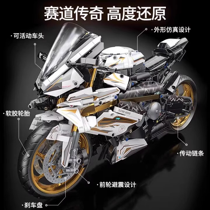 适用乐高铂金版宝马摩托车机械组拼装积木赛车机车模型男孩子玩具