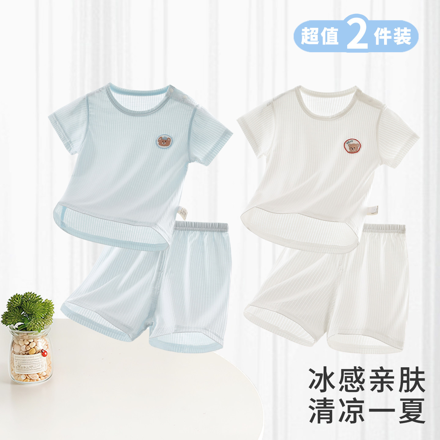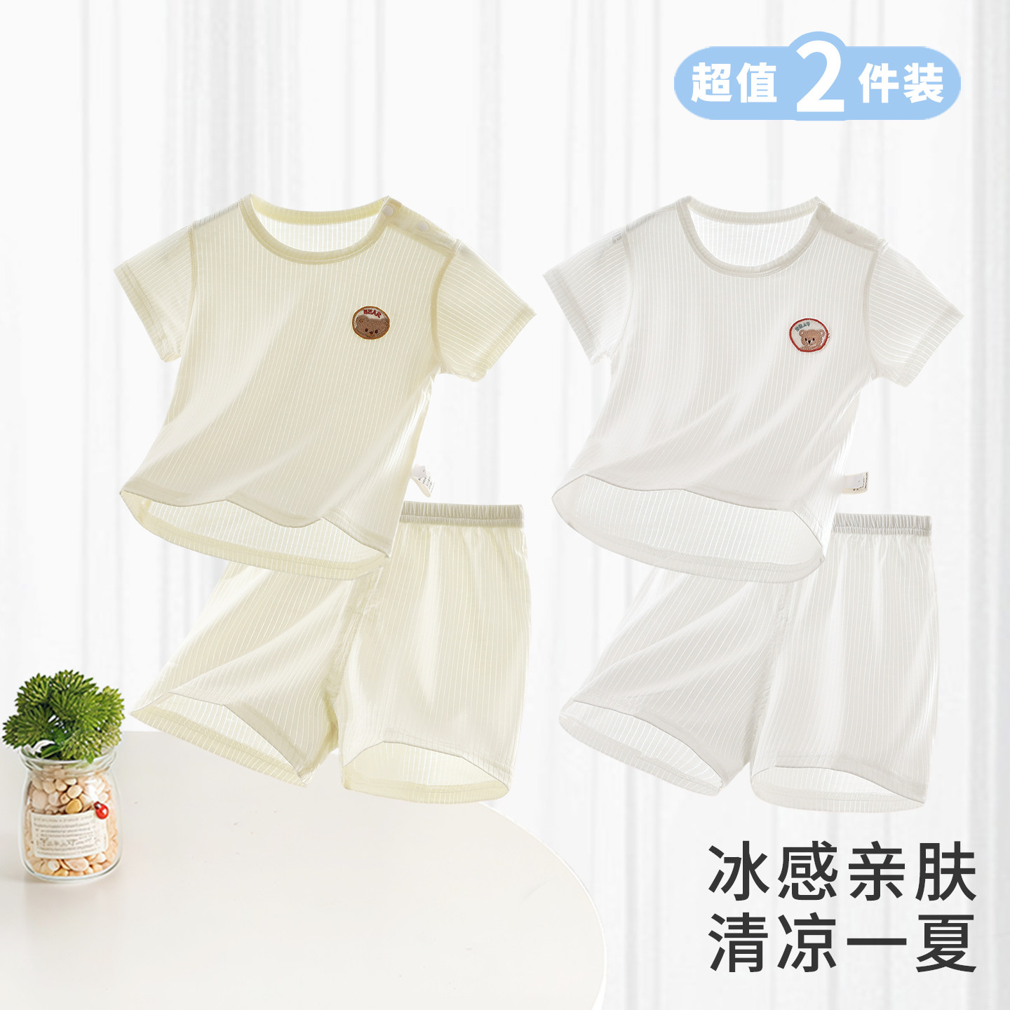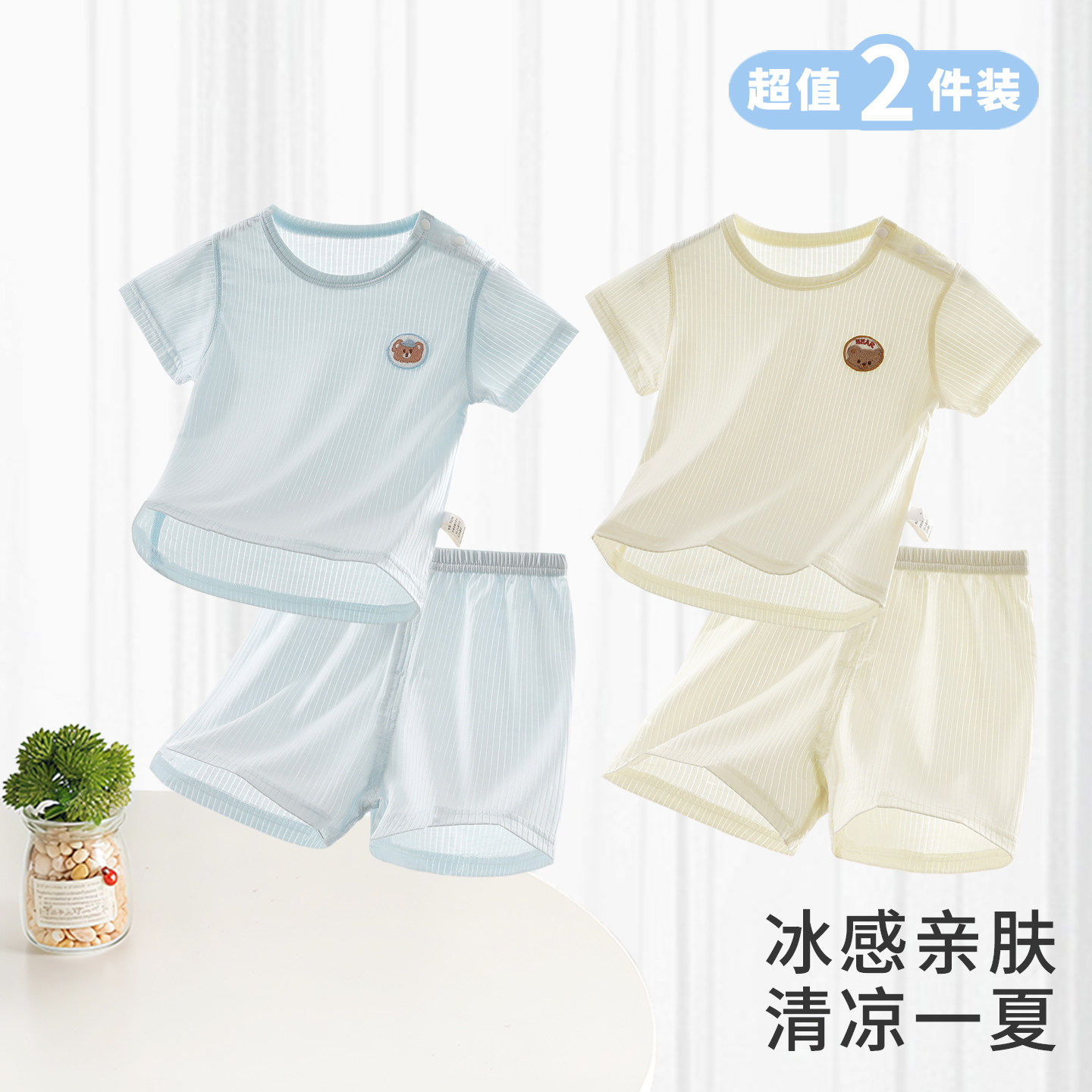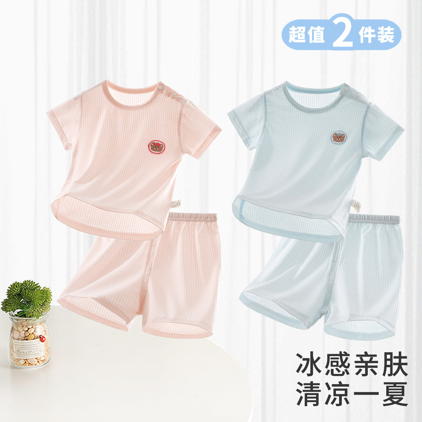 婴儿短袖短裤套装夏季宝宝衣服男女童莫代尔T恤薄款分体睡衣夏装