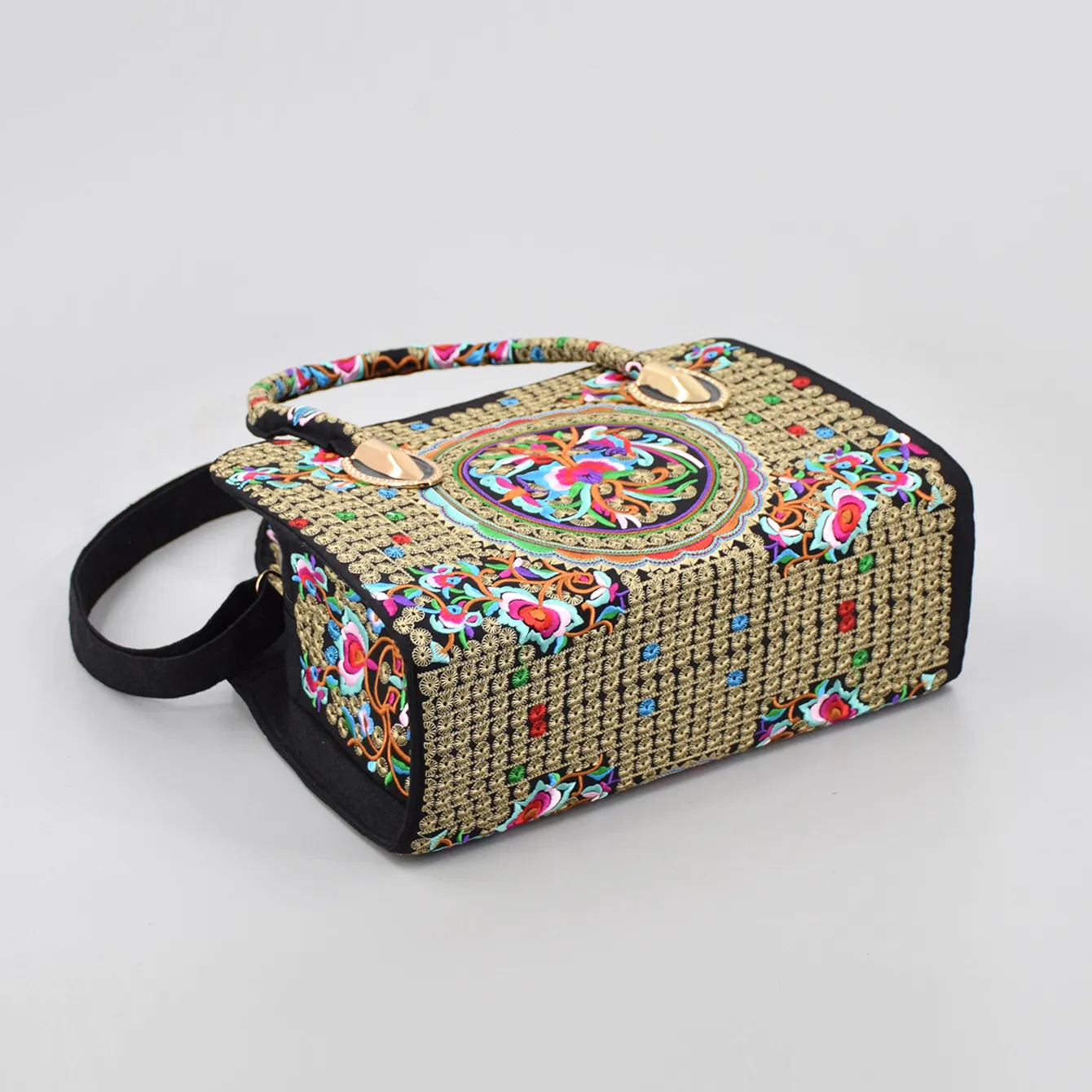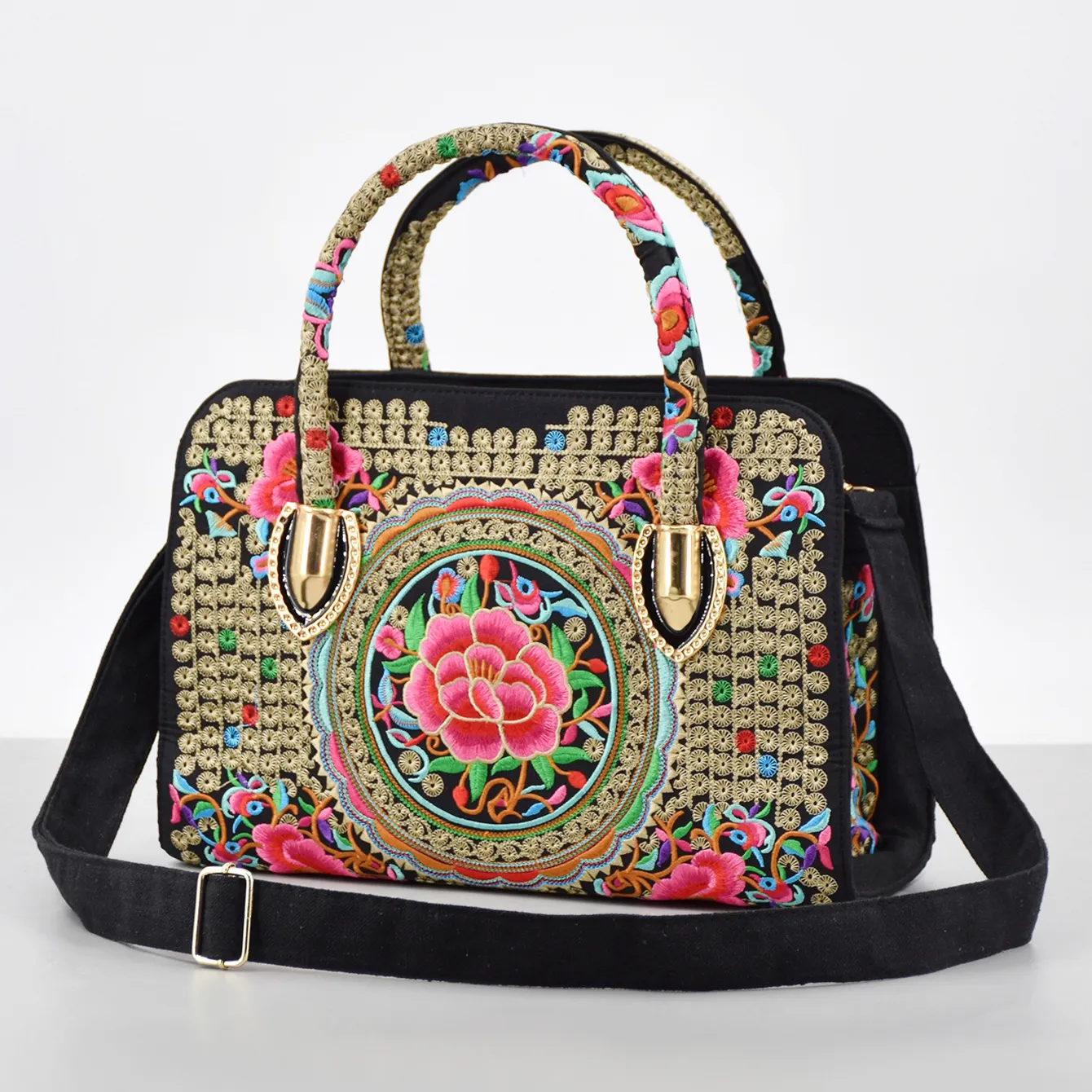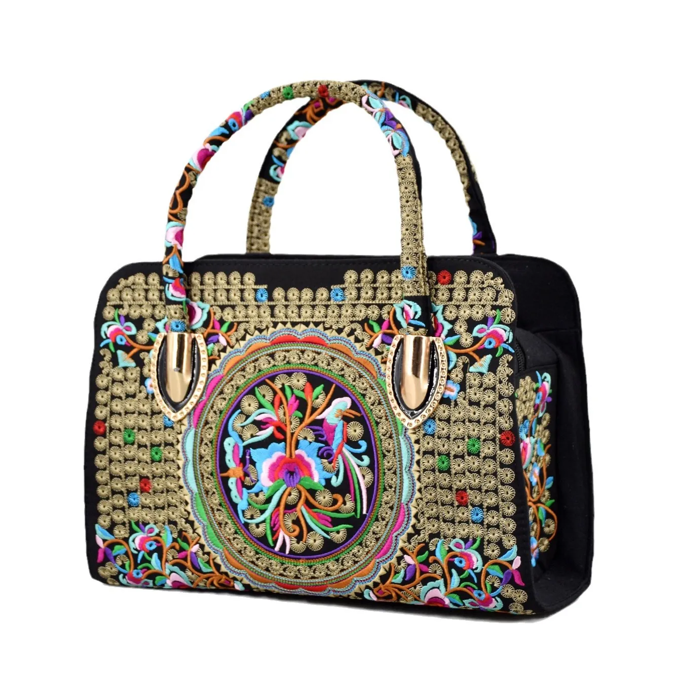 新民族风绣花手提包女包帆布单肩包带拉链大容量刺绣托特包斜挎包
