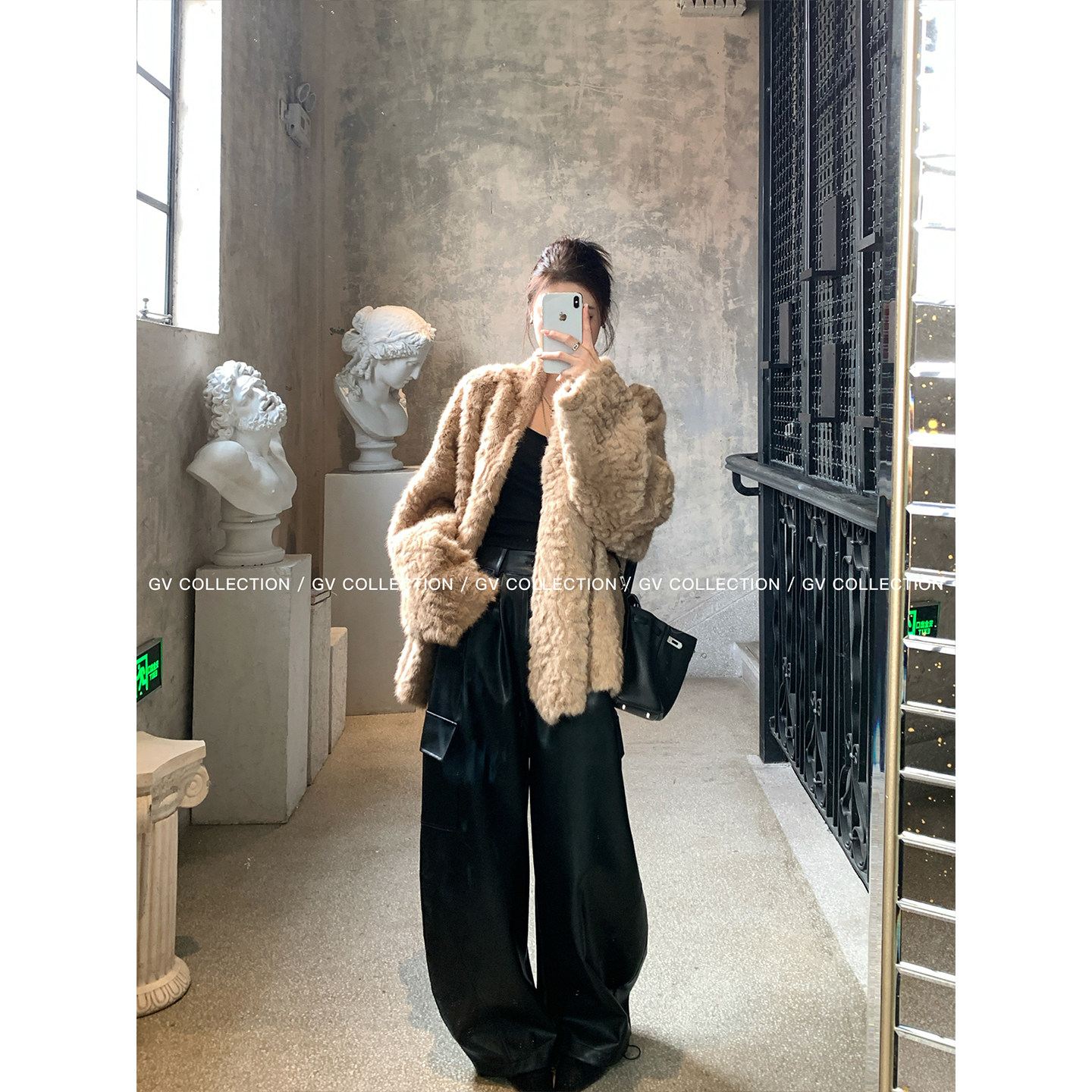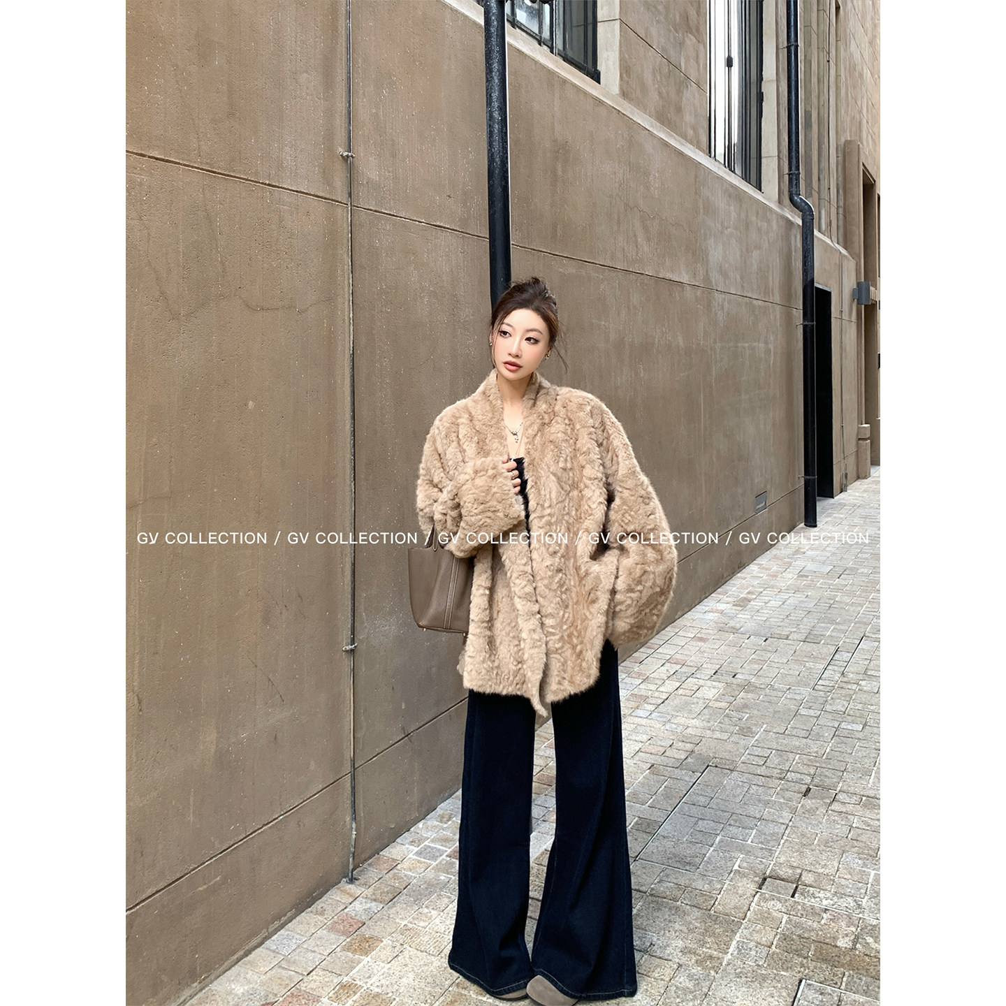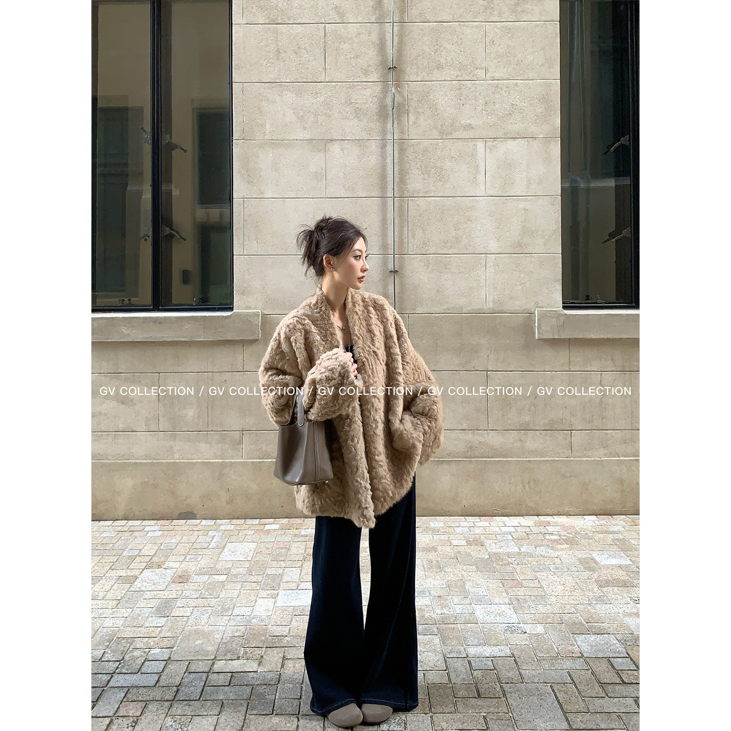 GV大白哥 古巴VTG 肌理感廓形环保毛开襟外套 冬季新款上衣女