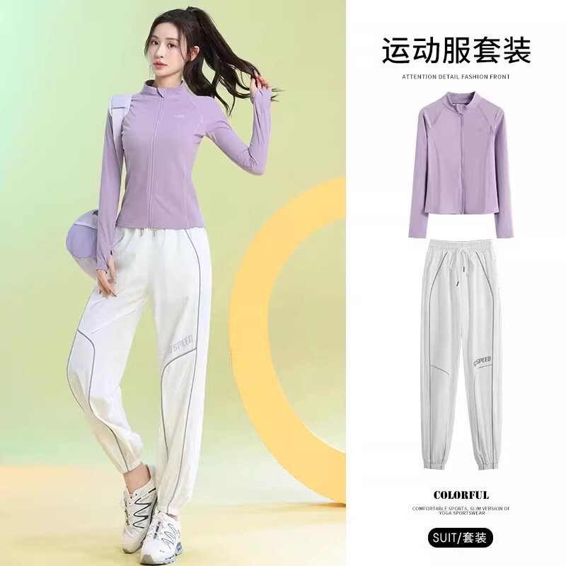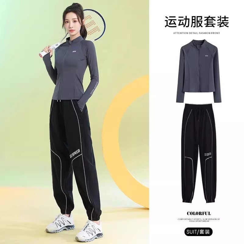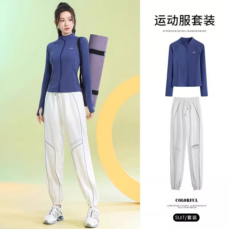 法国健身服长袖女款春秋户外专业晨跑速干跳操运动套装新款网球服