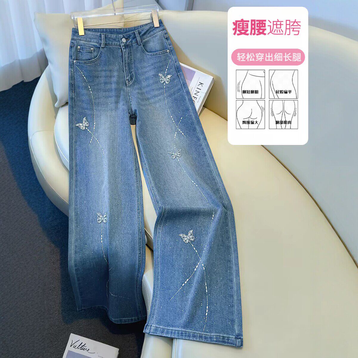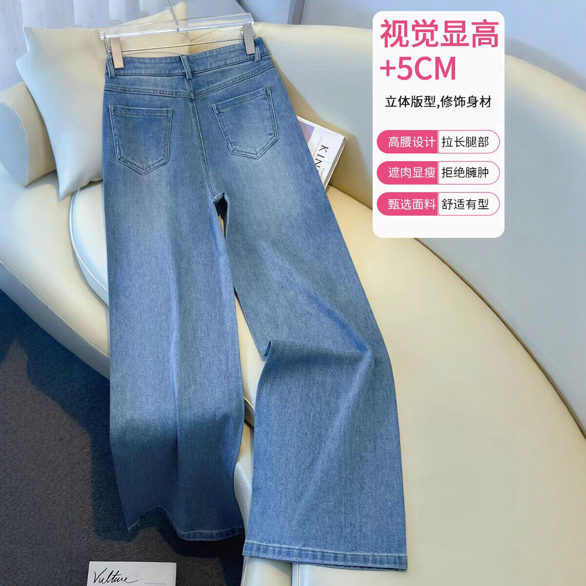 蓝色直筒牛仔裤女春季2026新款高腰宽松垂感今年流行爆款阔腿裤子