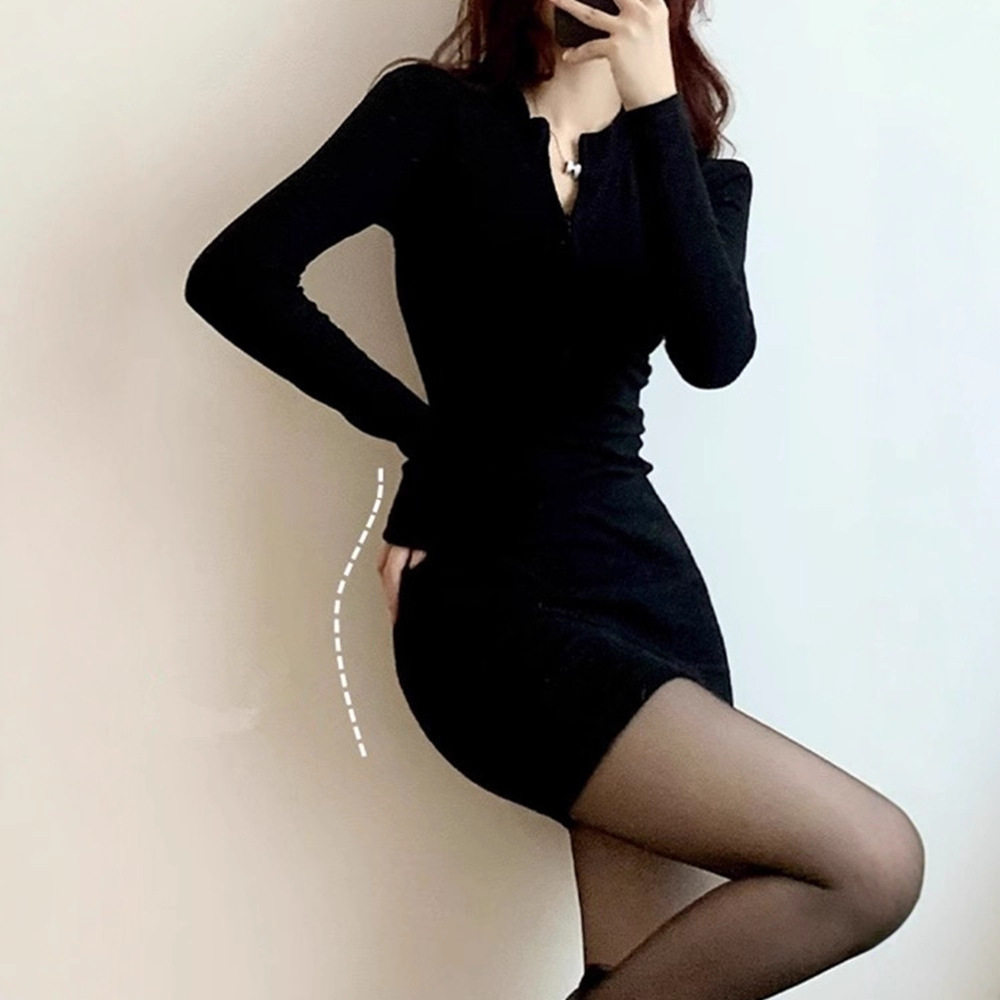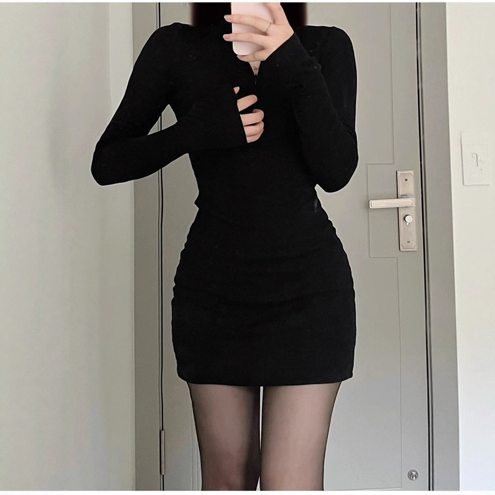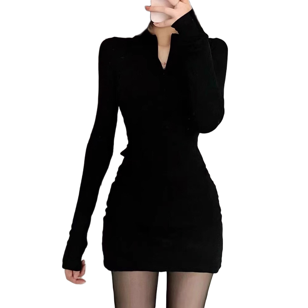 秋冬季黑色连衣裙女包臀裙内搭紧身御姐修身性感套装纯欲短款裙