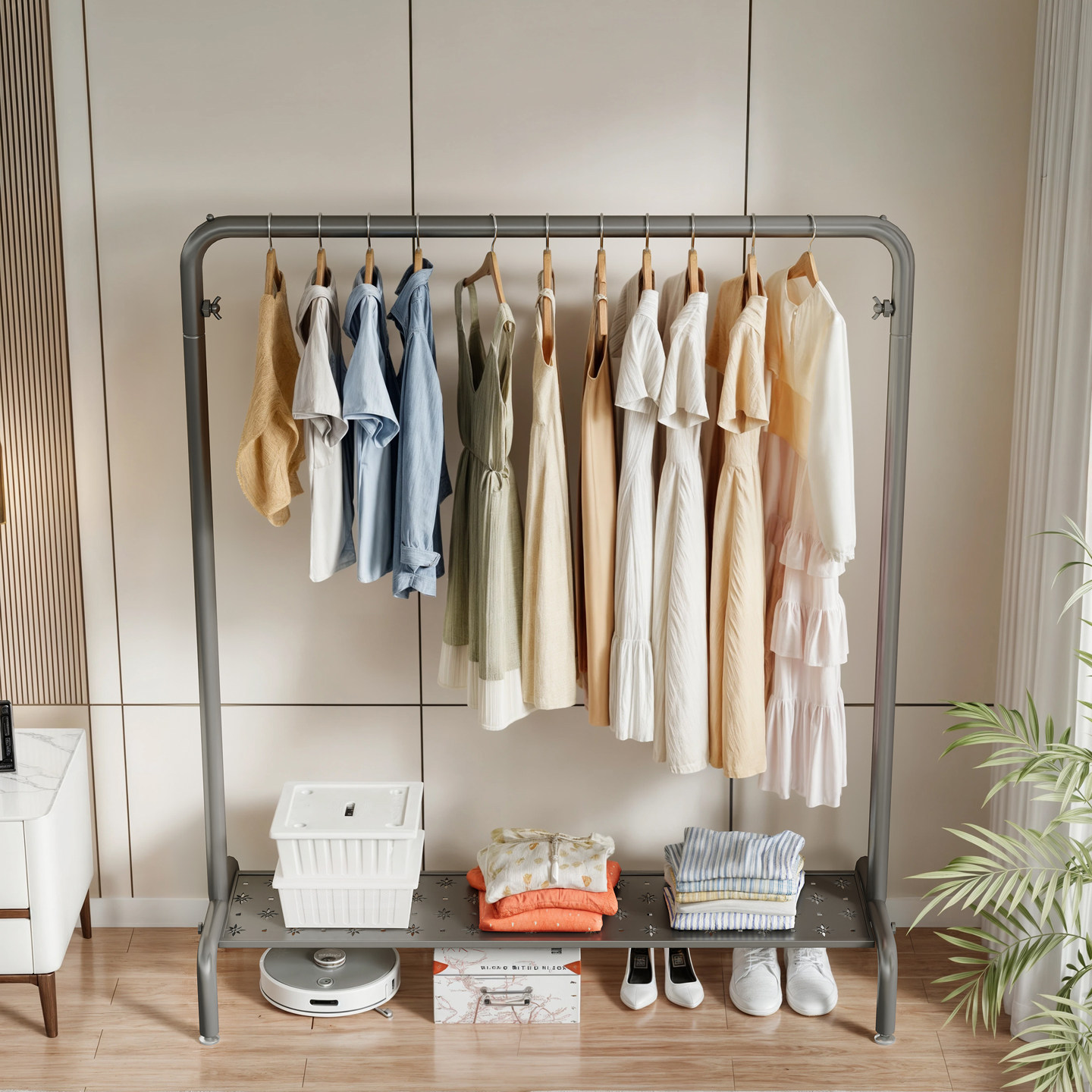 晾衣架落地家用带轮子简易单杠置地式挂衣架卧室阳台晾晒衣服架子