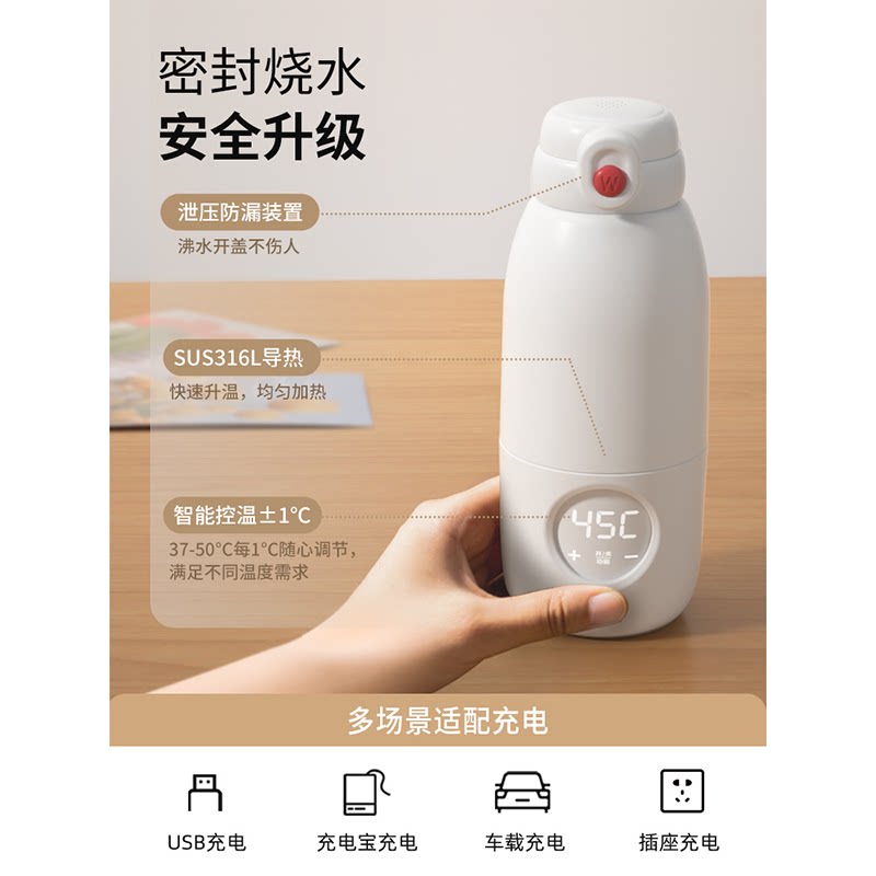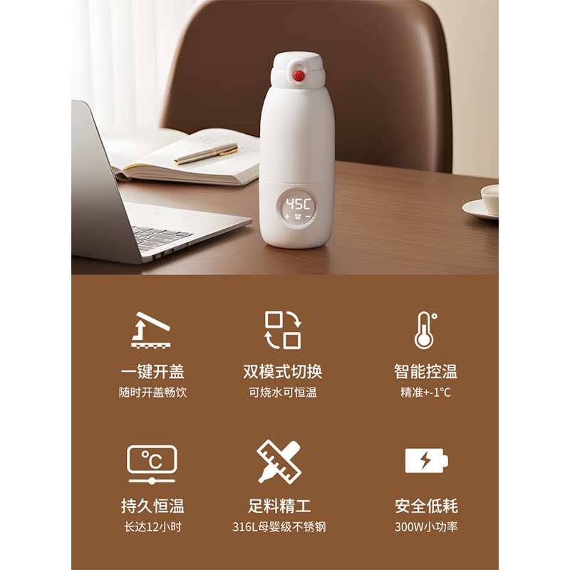 无线烧水杯旅行便携式烧水壶恒温保温杯免插电加热水杯外出电热杯