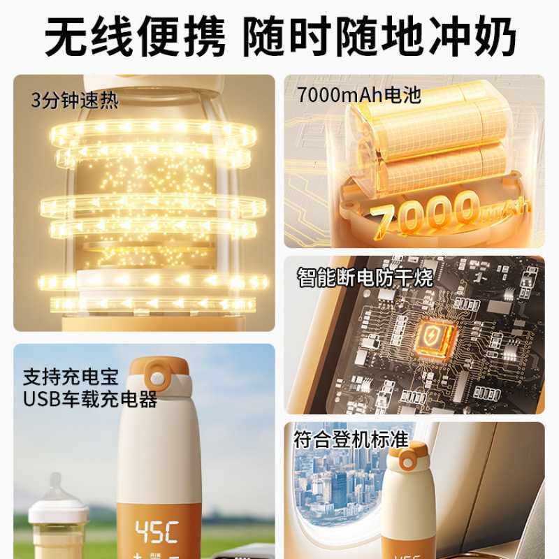 便携式烧水壶免插电无线烧水杯充电保温恒温水壶旅行外出冲奶加热