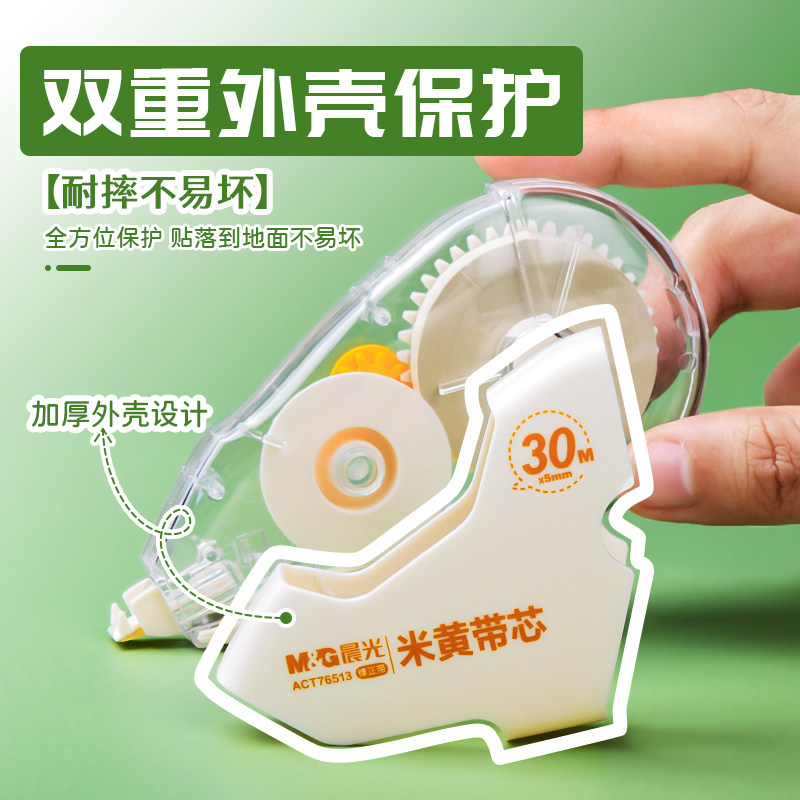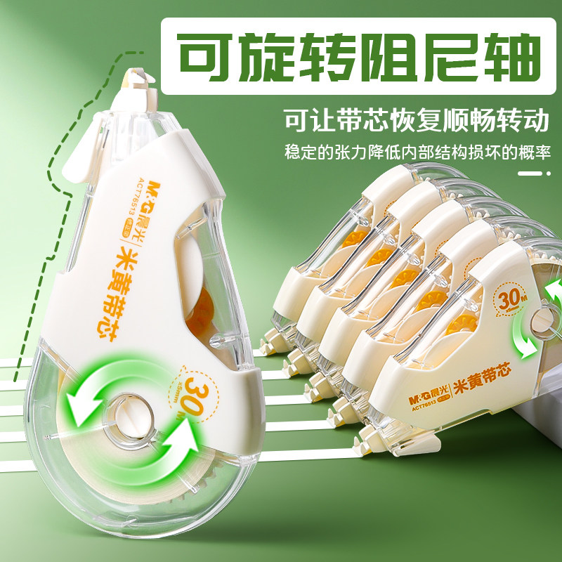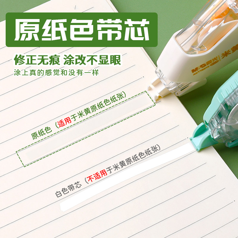 晨光修正带小学生专用大容量米黄原纸色隐形带静音涂改带改正带顺滑初中生高颜值休正带修改消字涂改液