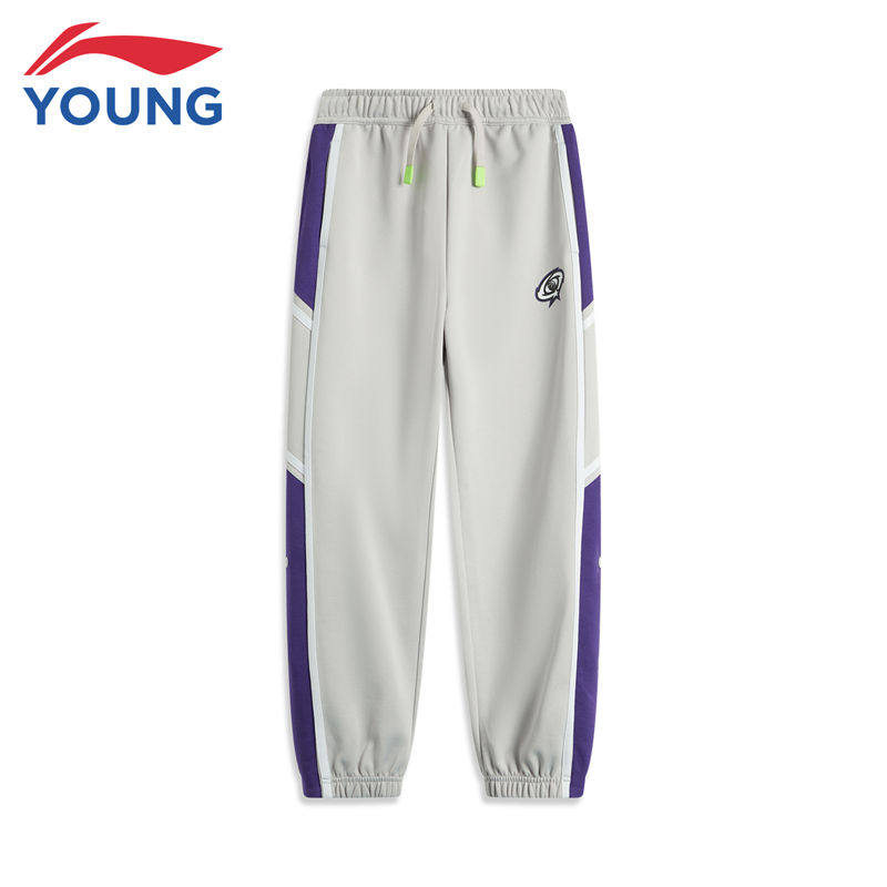 李宁童装儿童运动裤男大童2026春季新款宽松收口排扣篮球训练长裤