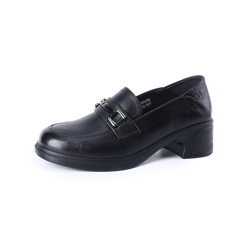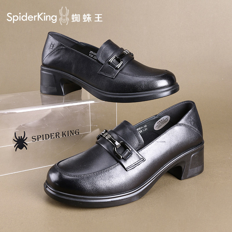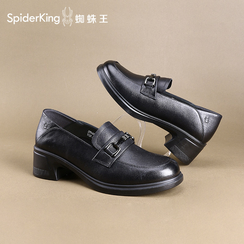 蜘蛛王真皮乐福鞋女2026年春季新款粗跟通勤小皮鞋一脚蹬浅口单鞋