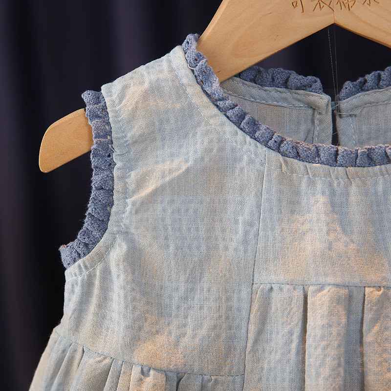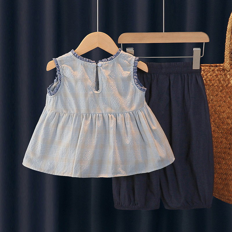 311线报网描述:女宝宝套装夏季公主甜美衬衫无袖背心2件套