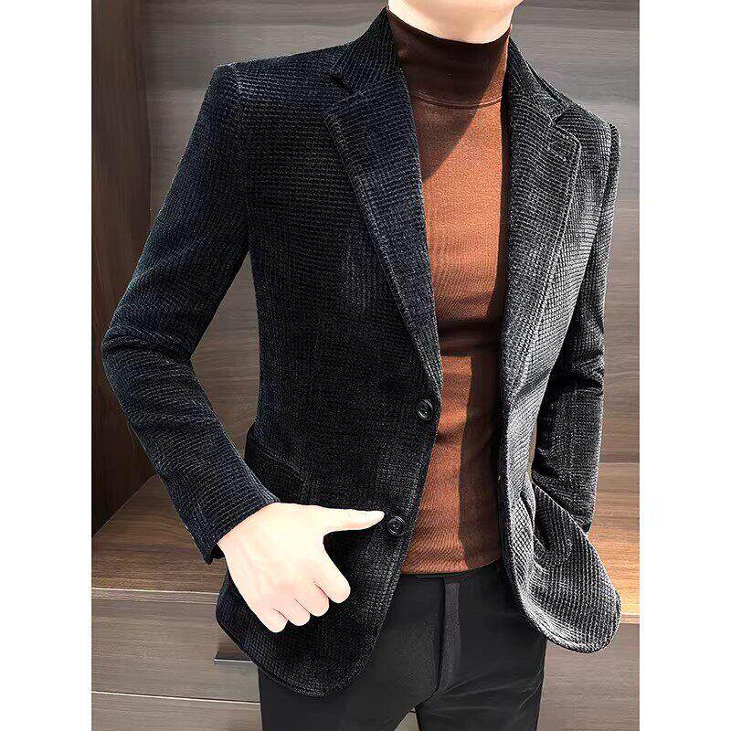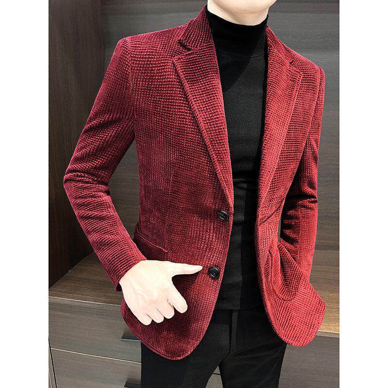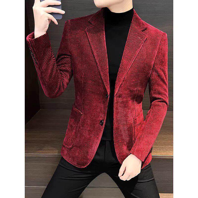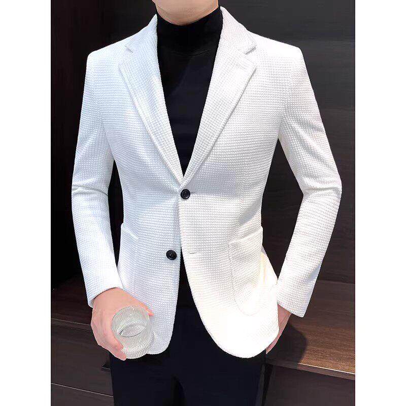 潮牌雪尼尔西装外套男款春秋季新款休闲单西高级感痞帅华夫格西服