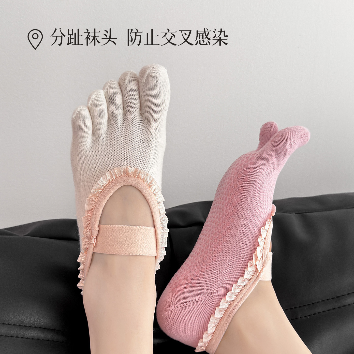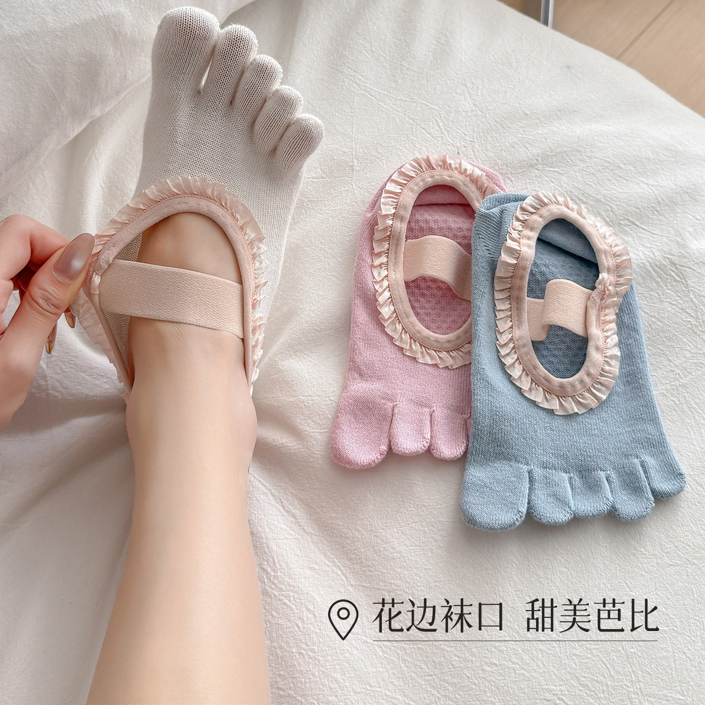 五指瑜伽袜女夏季薄款防滑分趾船袜蕾丝花边普拉提袜子