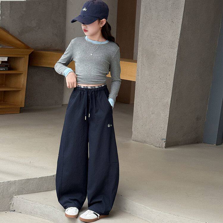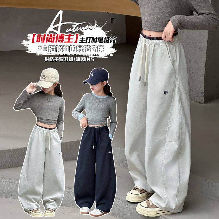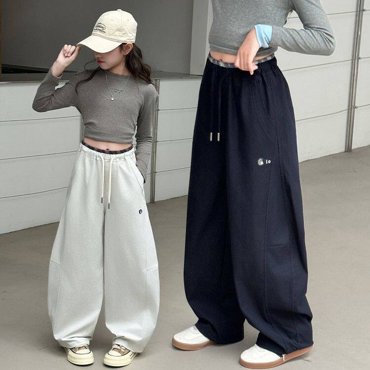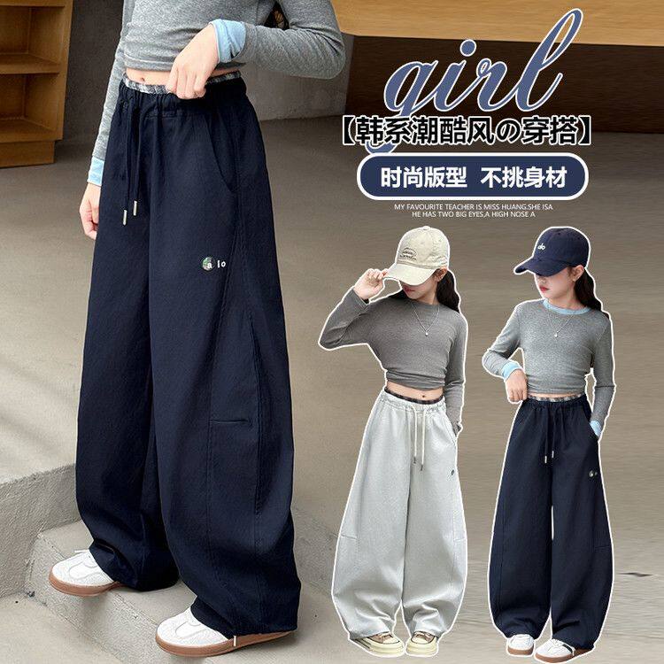 女童裤子春秋款阔腿裤女大童春装2026新款运动裤初中生儿童直筒裤