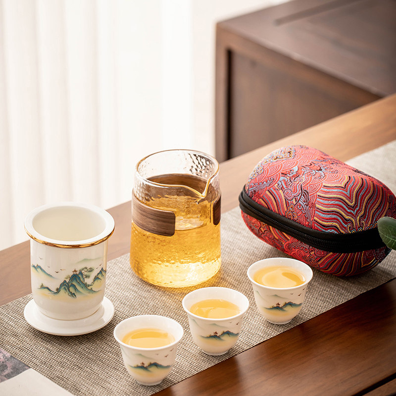 玻璃旅行茶具套装便携式包户外泡茶壶陶瓷快客杯露营喝茶装备送礼
