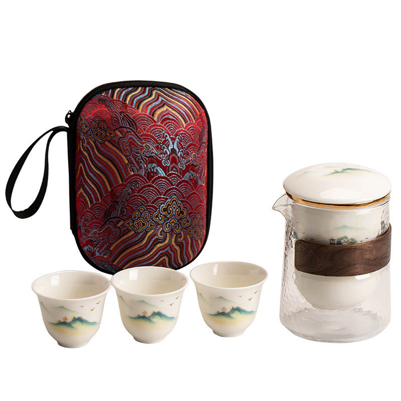 311线报网描述:玻璃旅行茶具套装便携式包户外泡茶壶