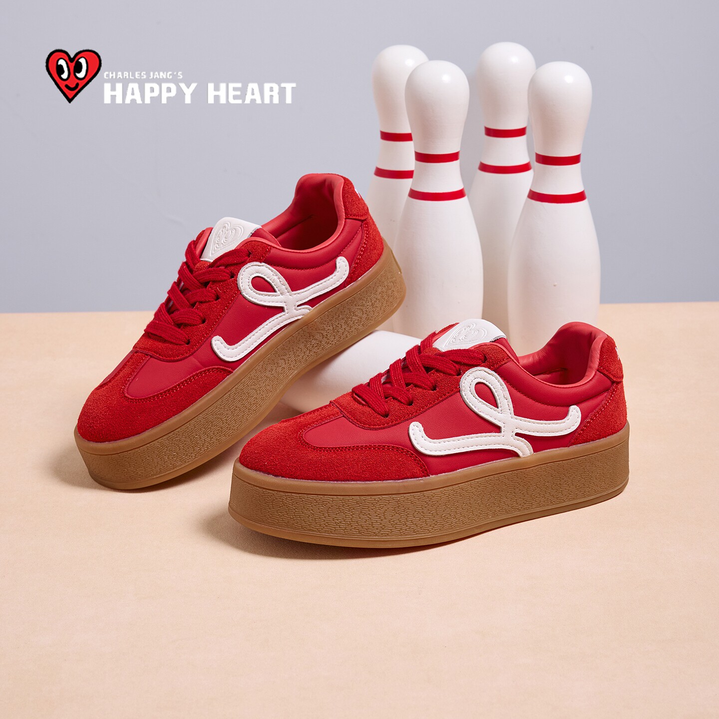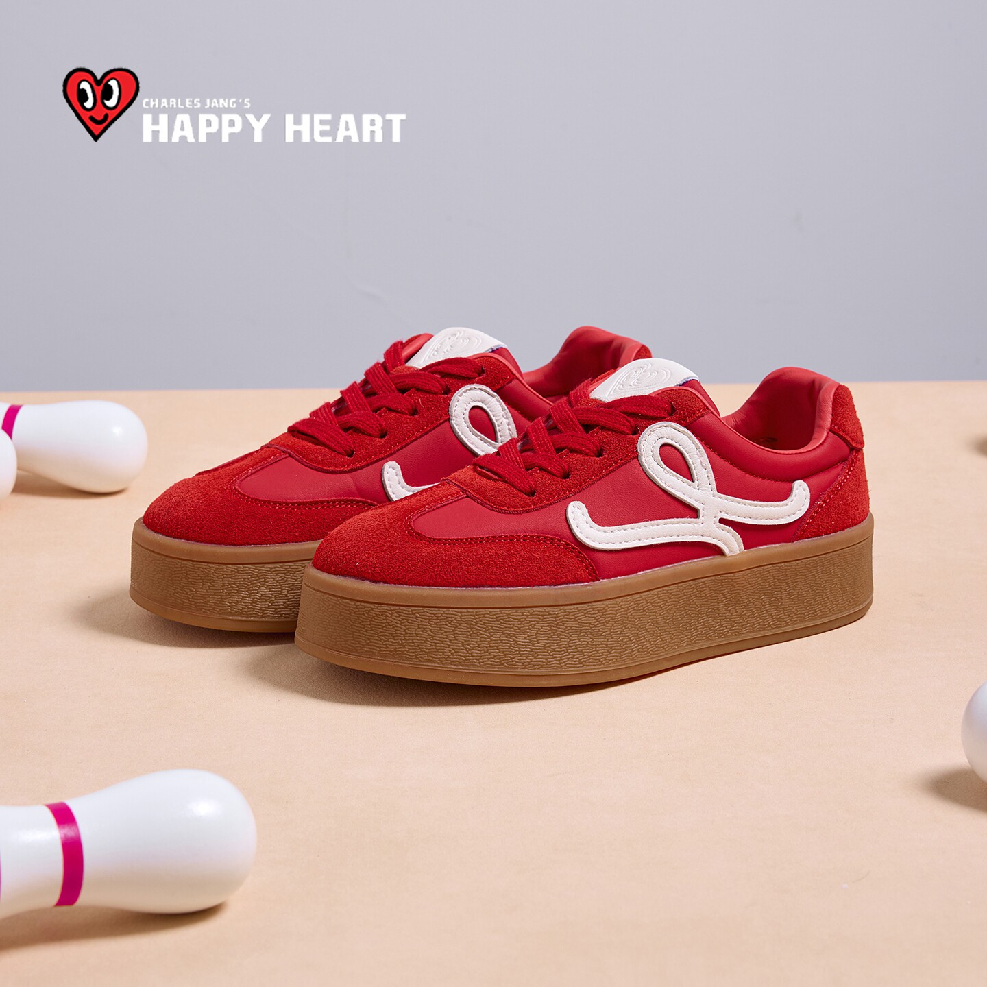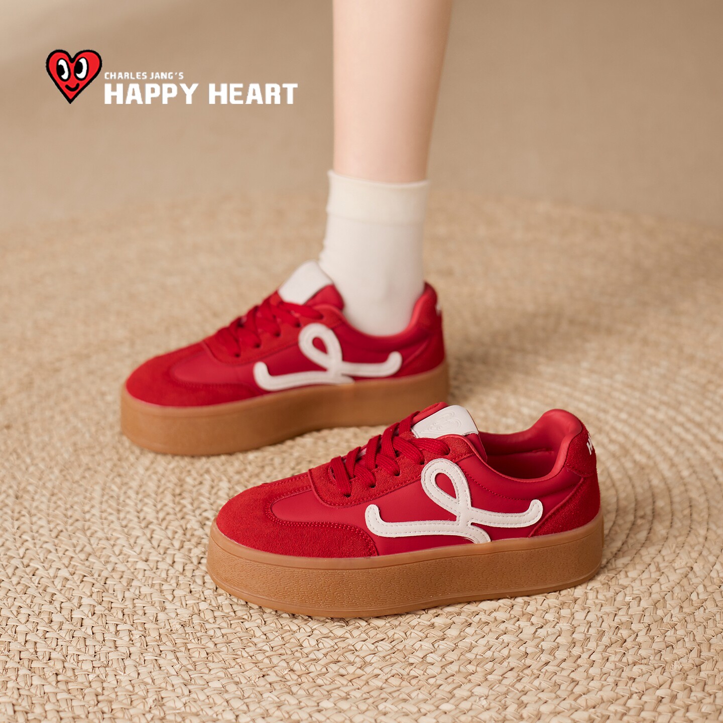 311线报网描述:查尔斯桃心厚底板鞋女红色休闲