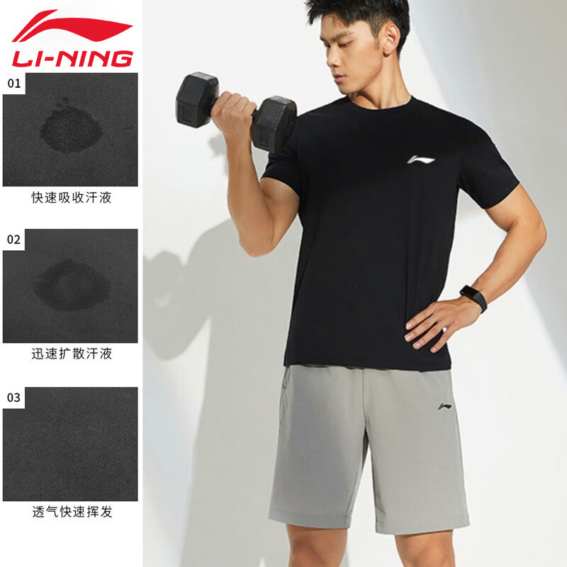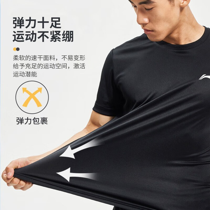 李宁速干短袖T恤男运动服跑步健身 夏季休闲大码宽松冰丝半袖上衣