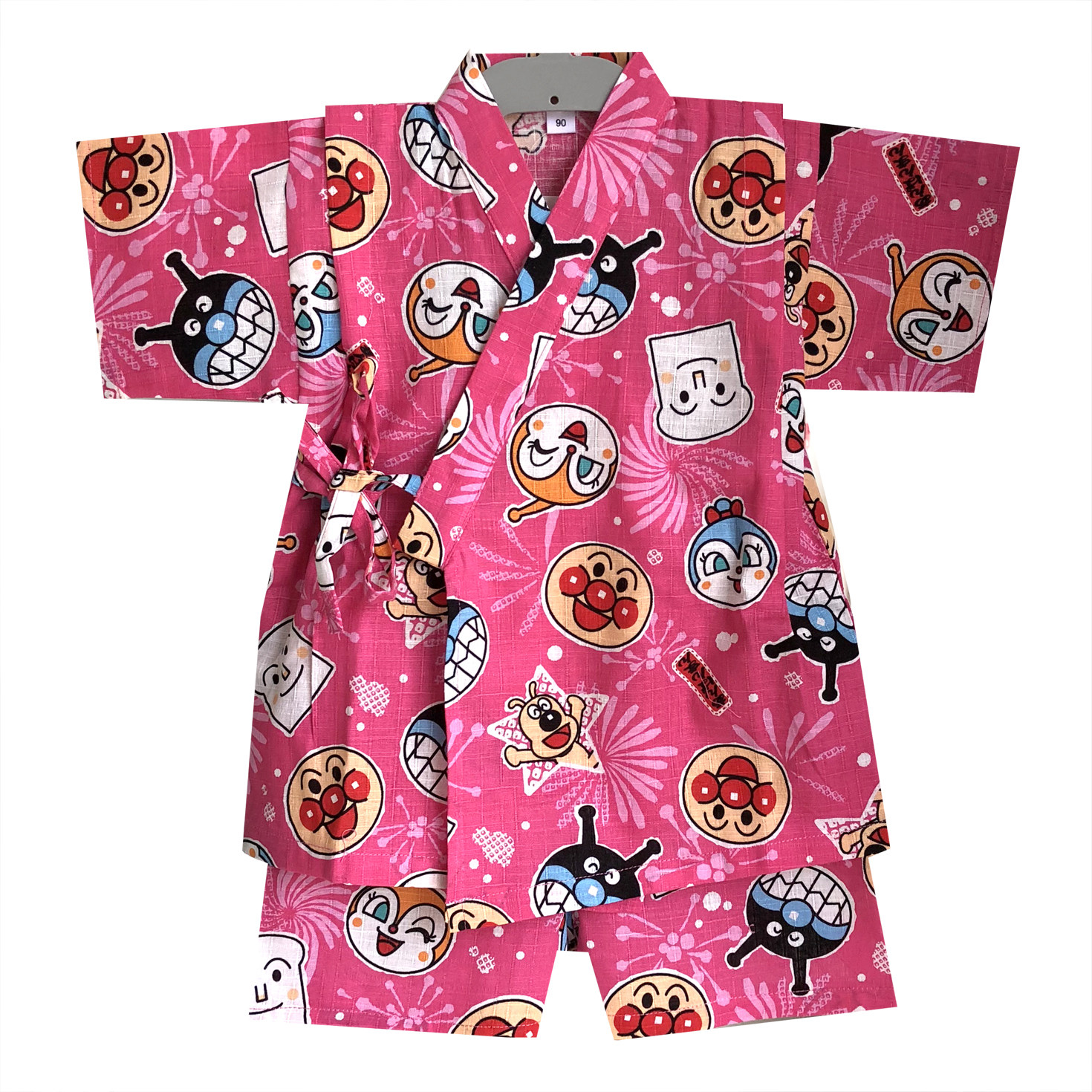 纯棉竹节棉 日本男童宝和服套装短袖家居服汗蒸睡衣演出卡通玫红