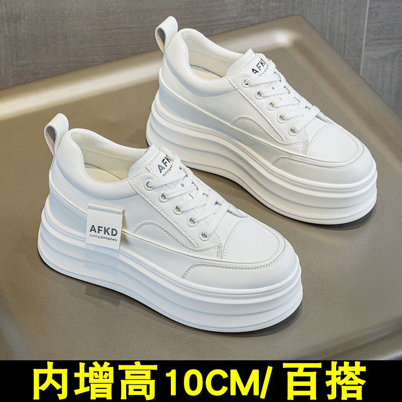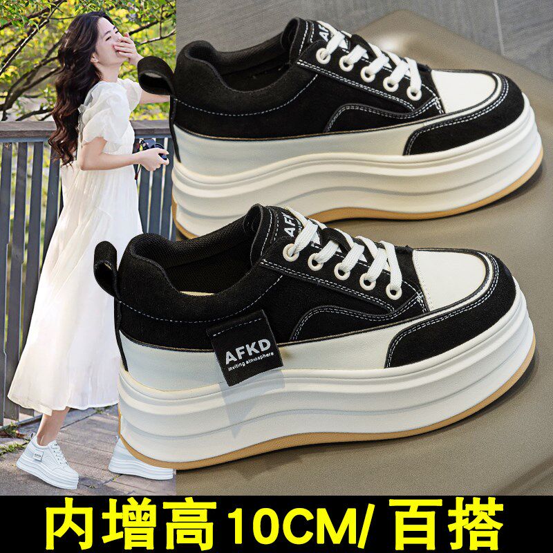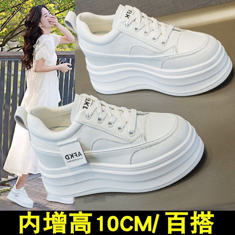 厚底10cm板鞋女松糕轻便显脚小20D25春季新款小个子内增高小白鞋