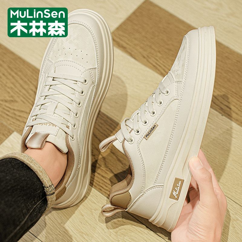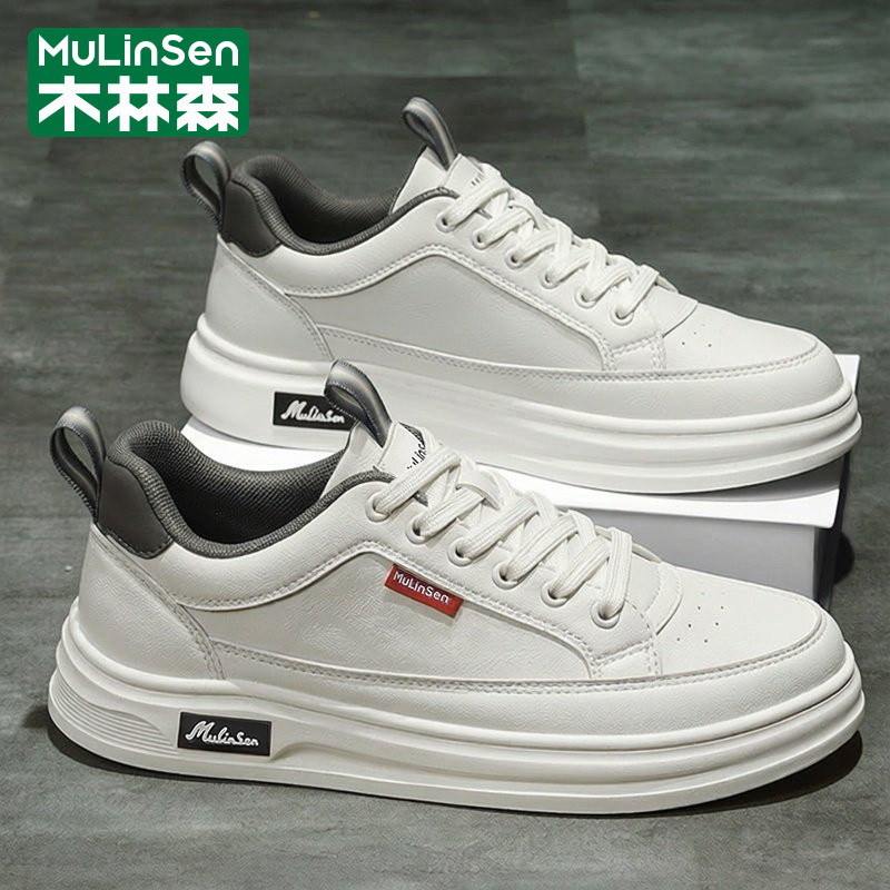 木林森男鞋春季2026新款潮流青少年运动休闲百搭软底小白皮面板鞋