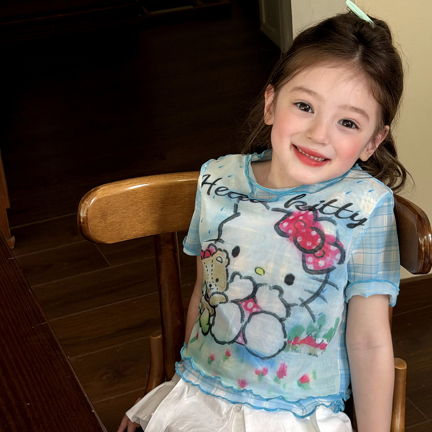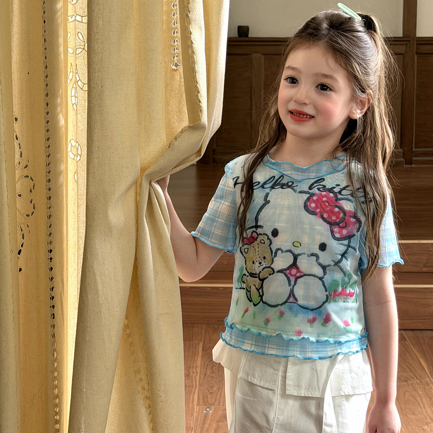 栀了成长记童装女童可爱卡通短袖上衣2026夏季新款儿童假两件T恤