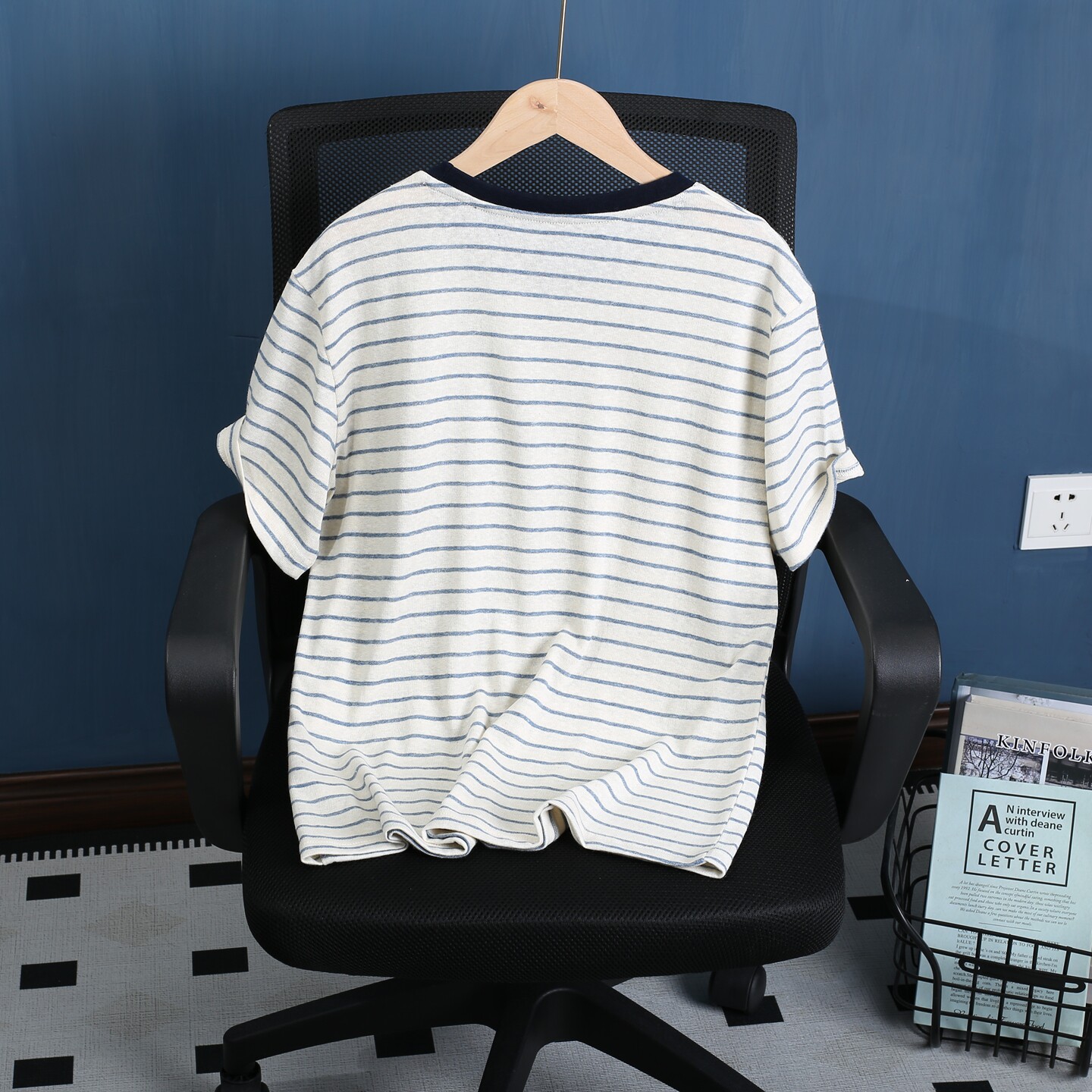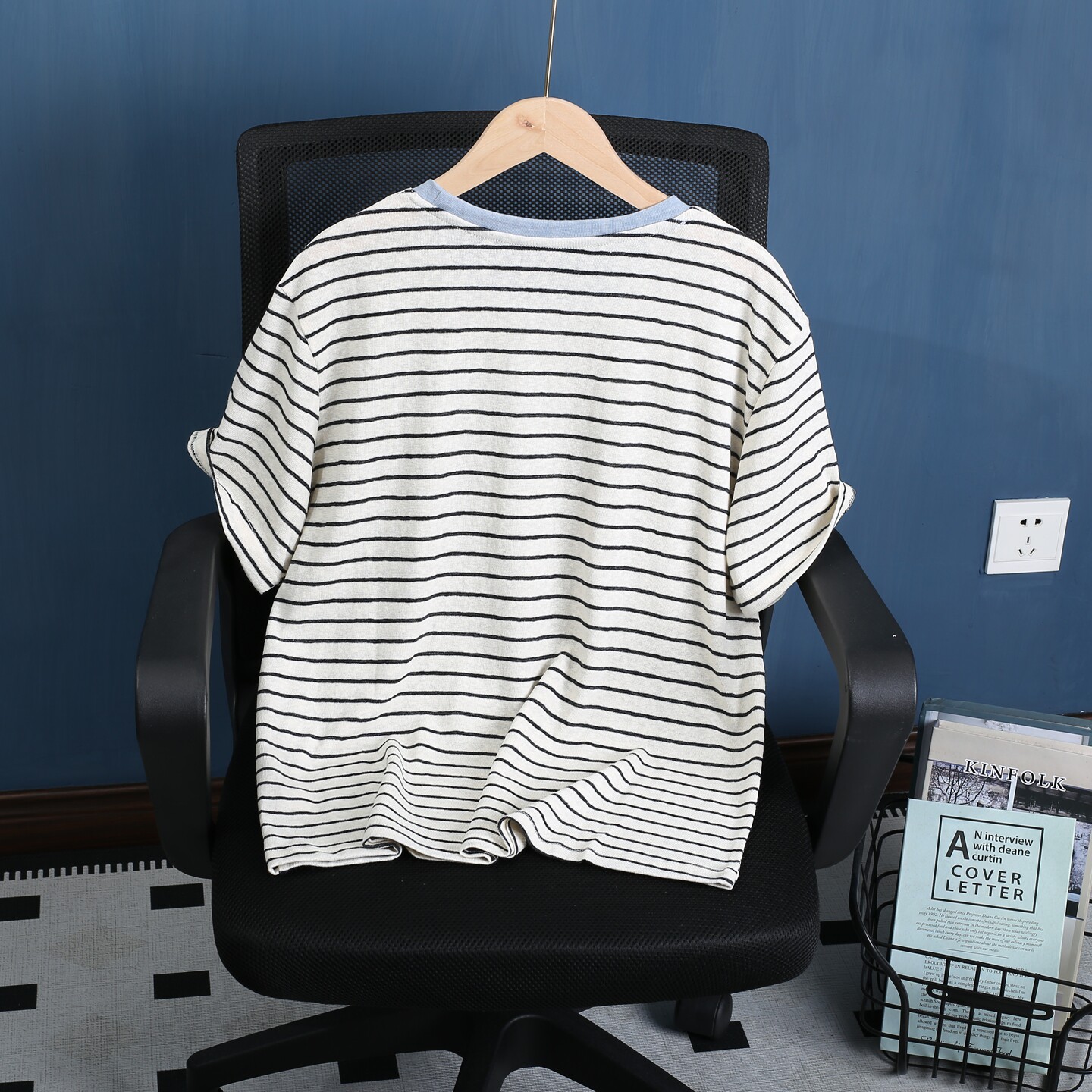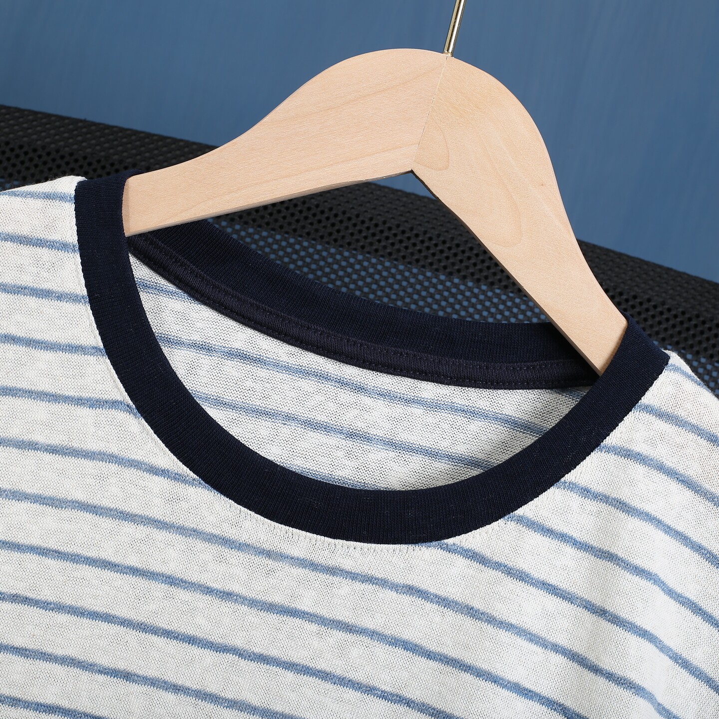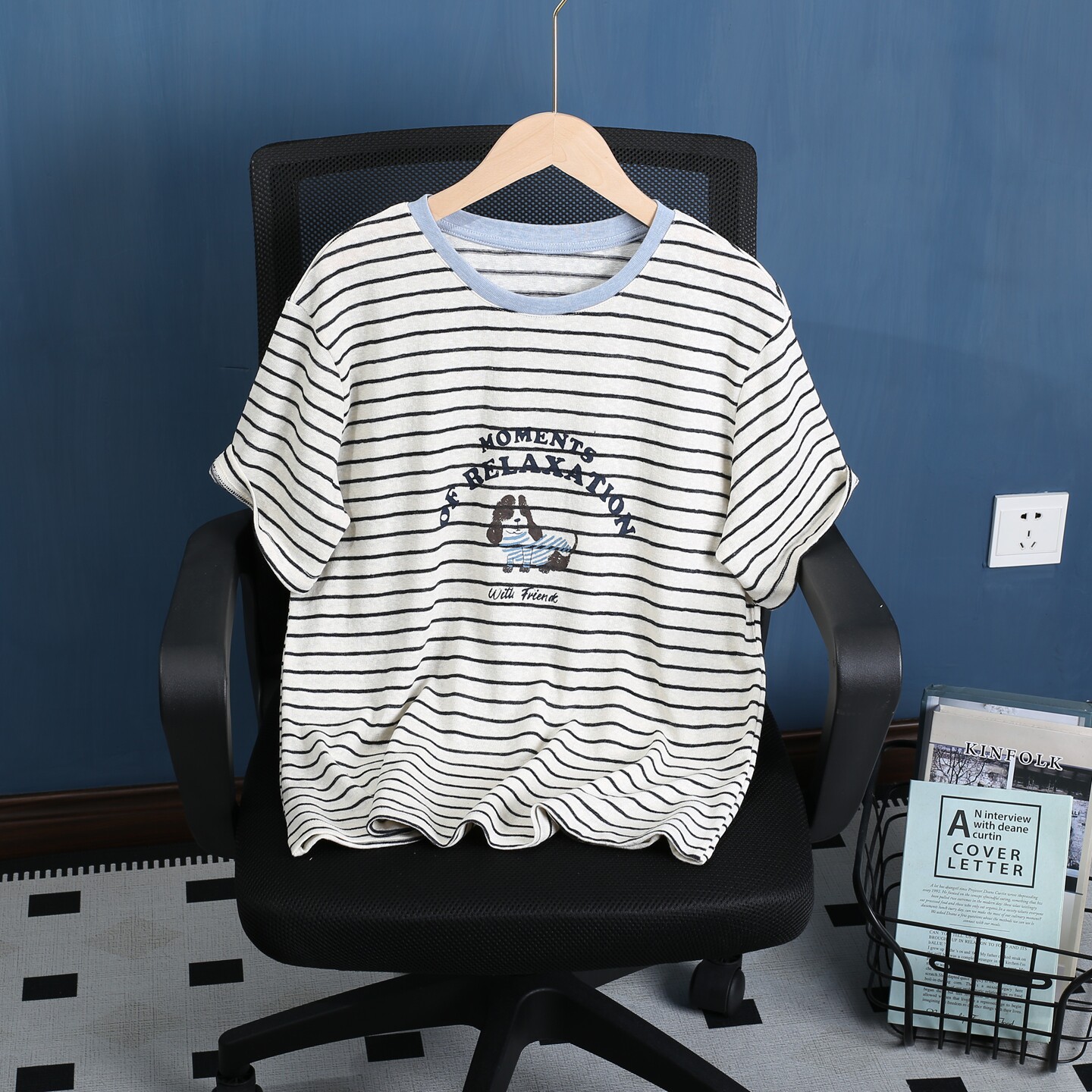 夏季新款短袖圆领条纹T恤衫休闲针织中袖内搭女孩大童青少年女装