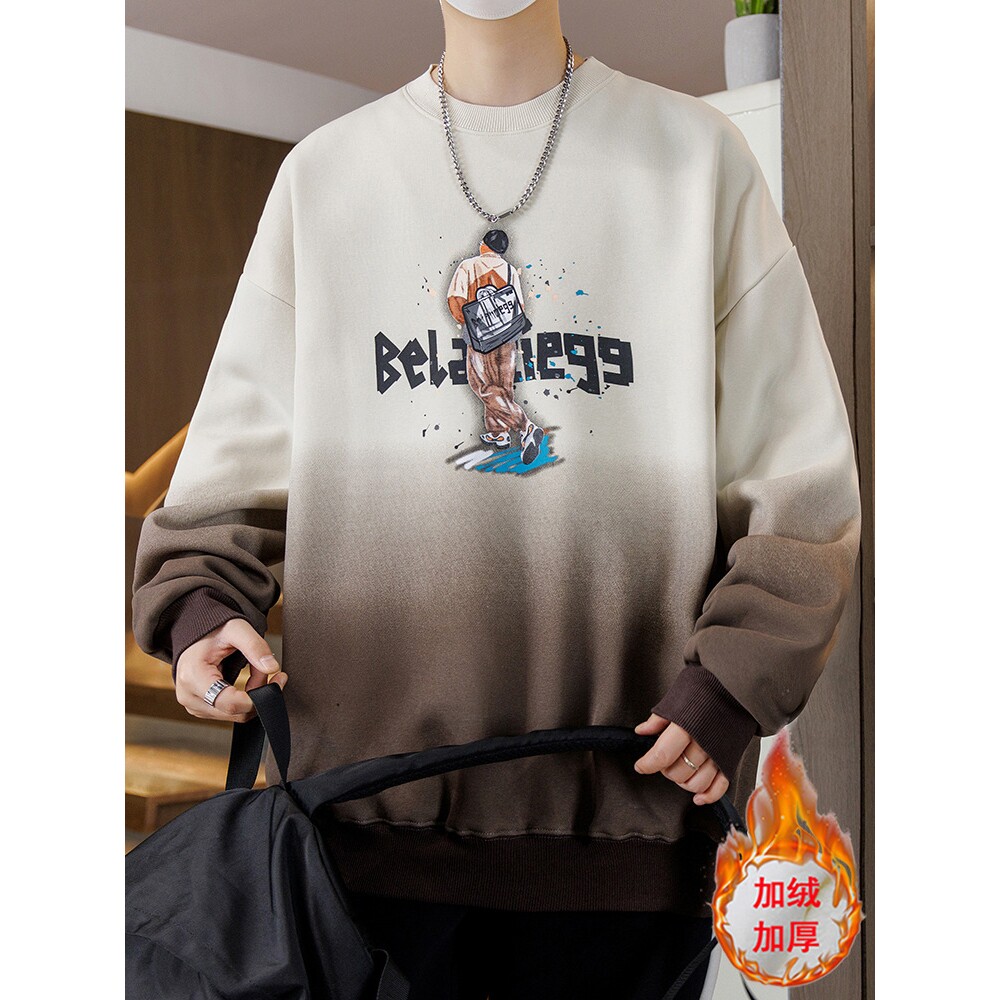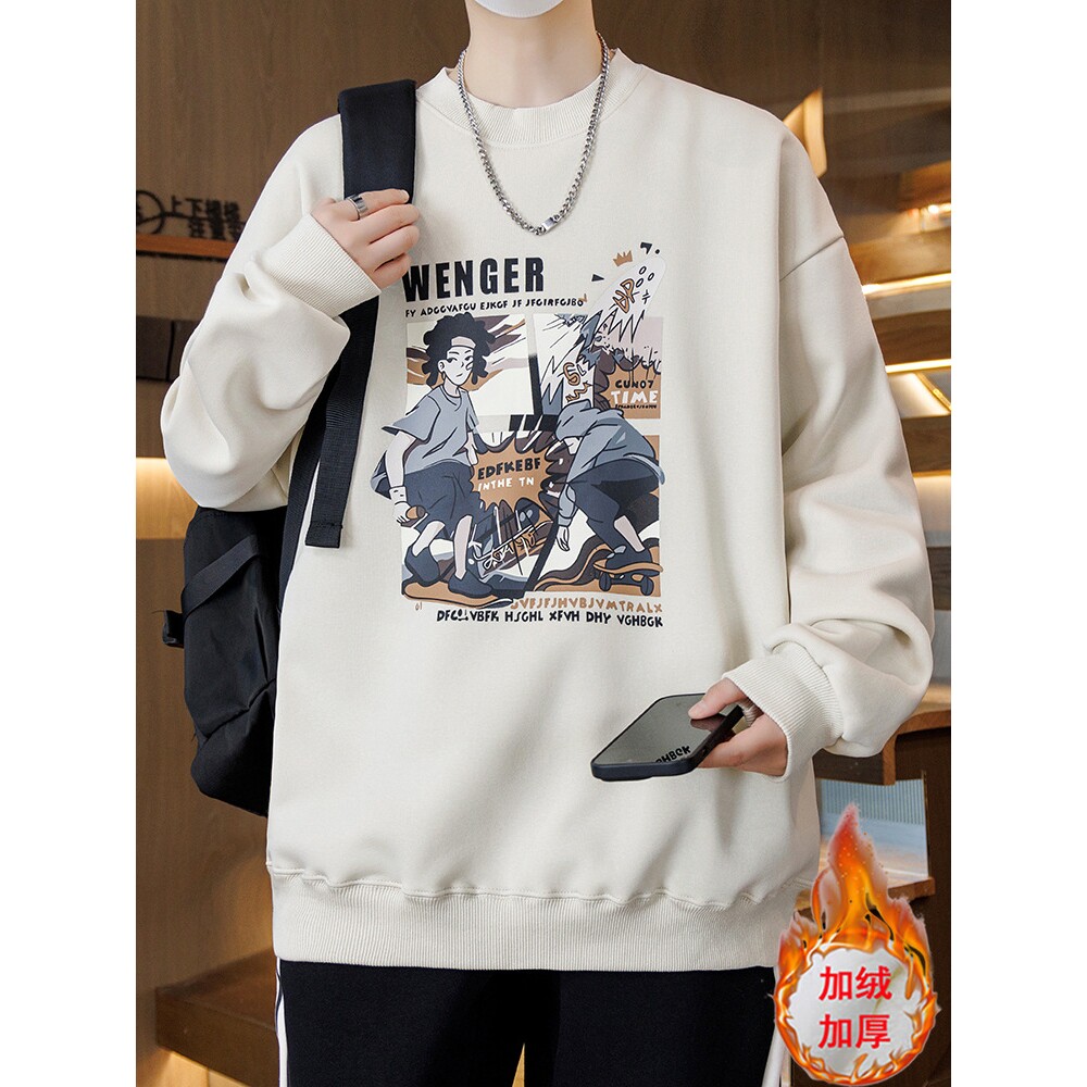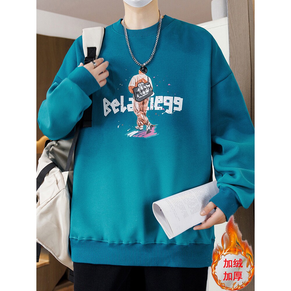 进口款圆领卫衣男孩初中高中学生加绒加厚打底衫青少年大童上衣服