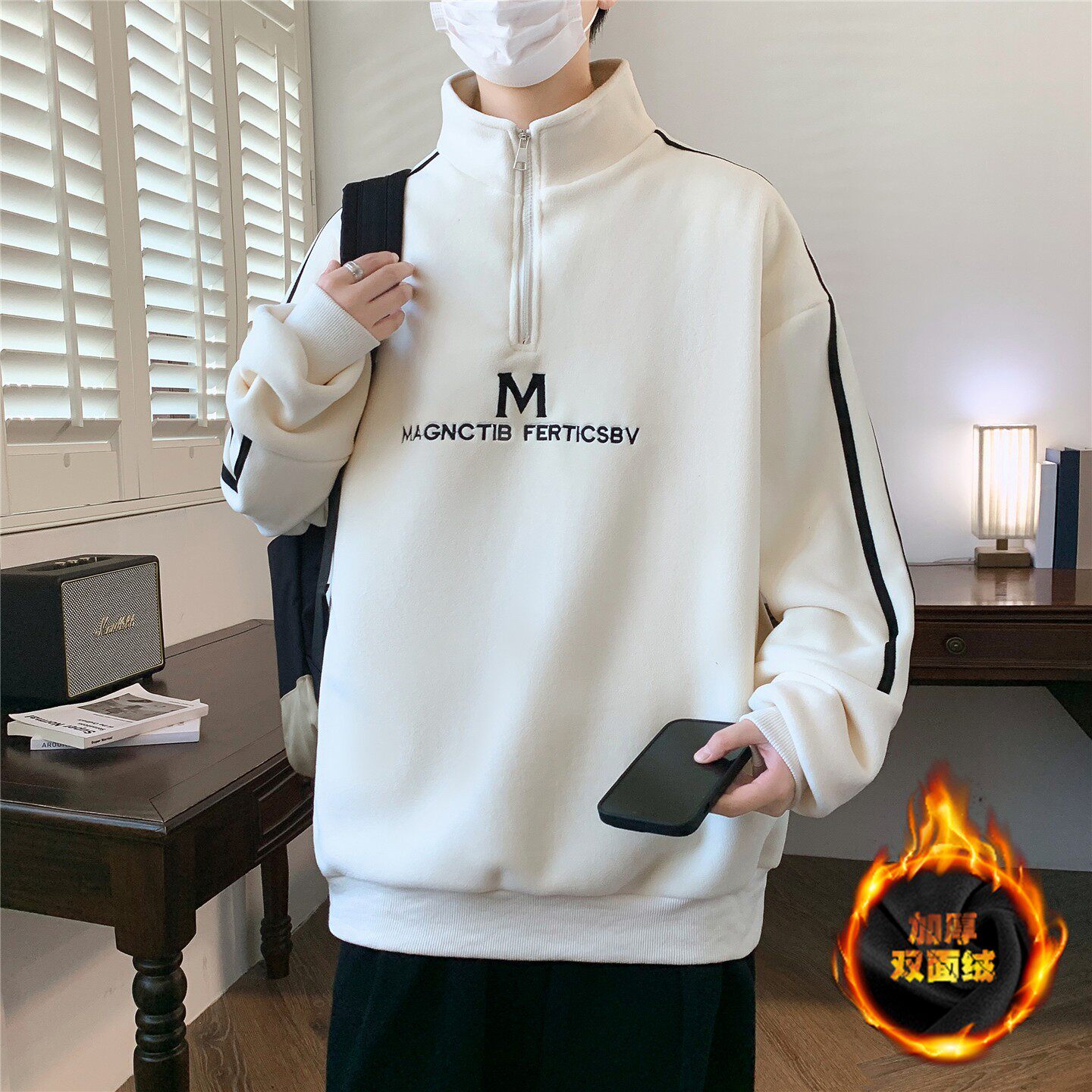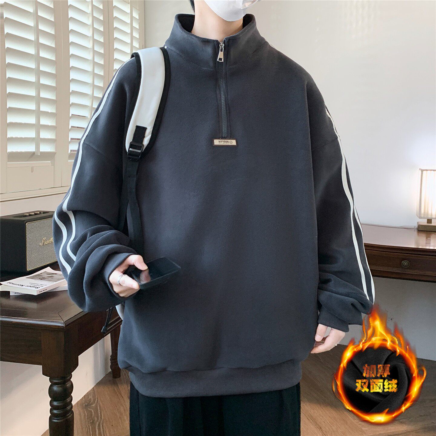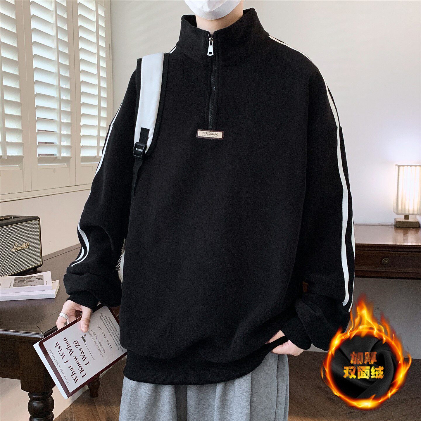 秋冬季半高领卫衣男孩初中高中学生加绒加厚青少年大童保暖打底衫