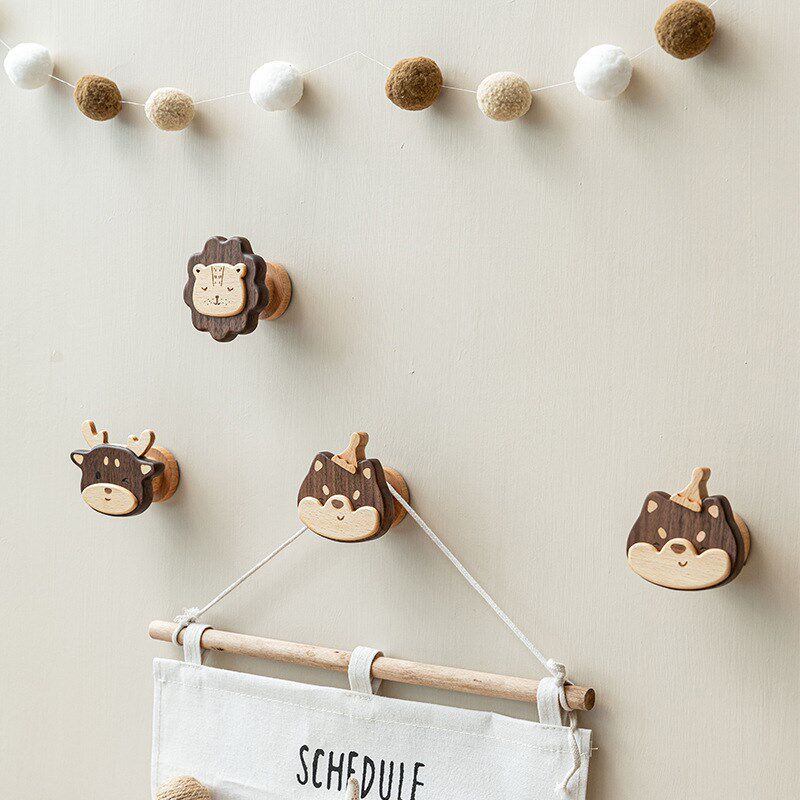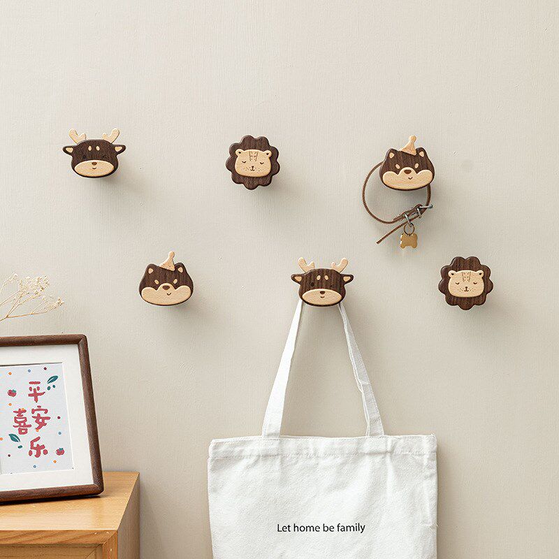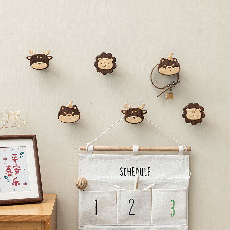 实木动物挂钩可爱抽屉衣柜门把手儿童房玄关入户墙面装饰创意壁挂