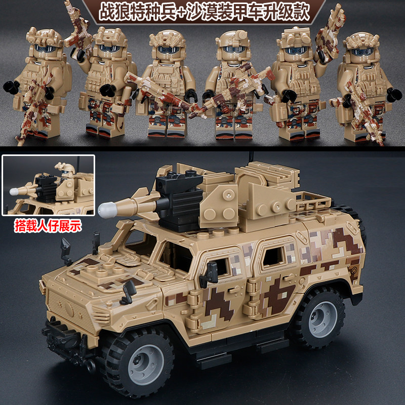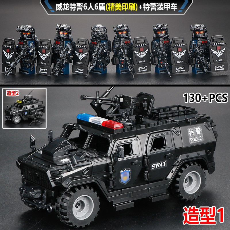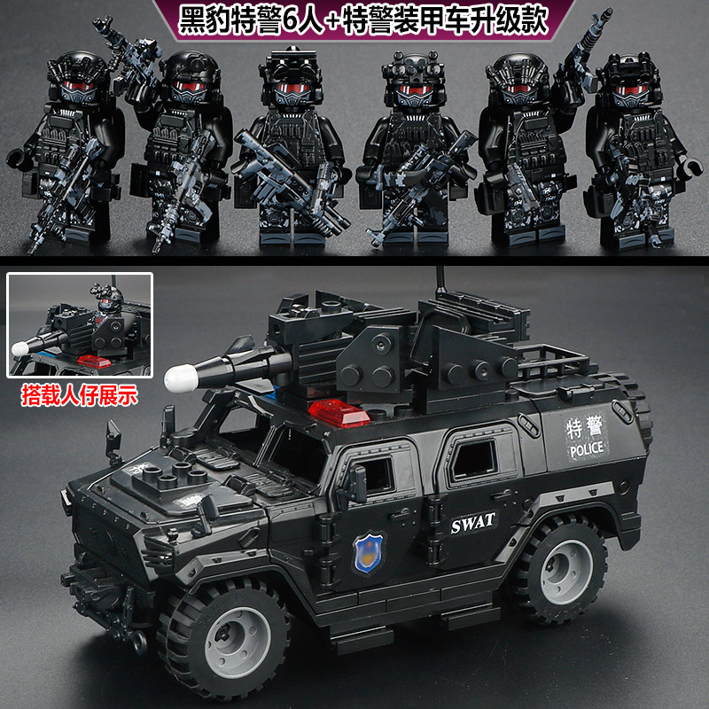 中国重装特警装甲车积木悍马人仔现代暗区突围变形军事益智玩具