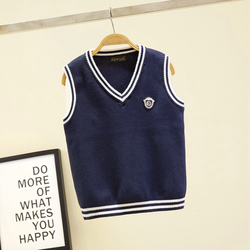 儿童针织马甲背心毛衣坎肩学院风男童女童春秋班服小学生校服毛衫