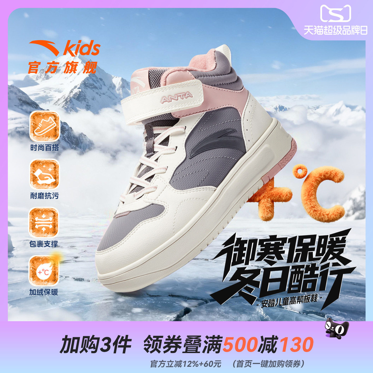 安踏儿童鞋女童二棉鞋2025秋冬新款运动鞋保暖中大童鞋子加绒板鞋