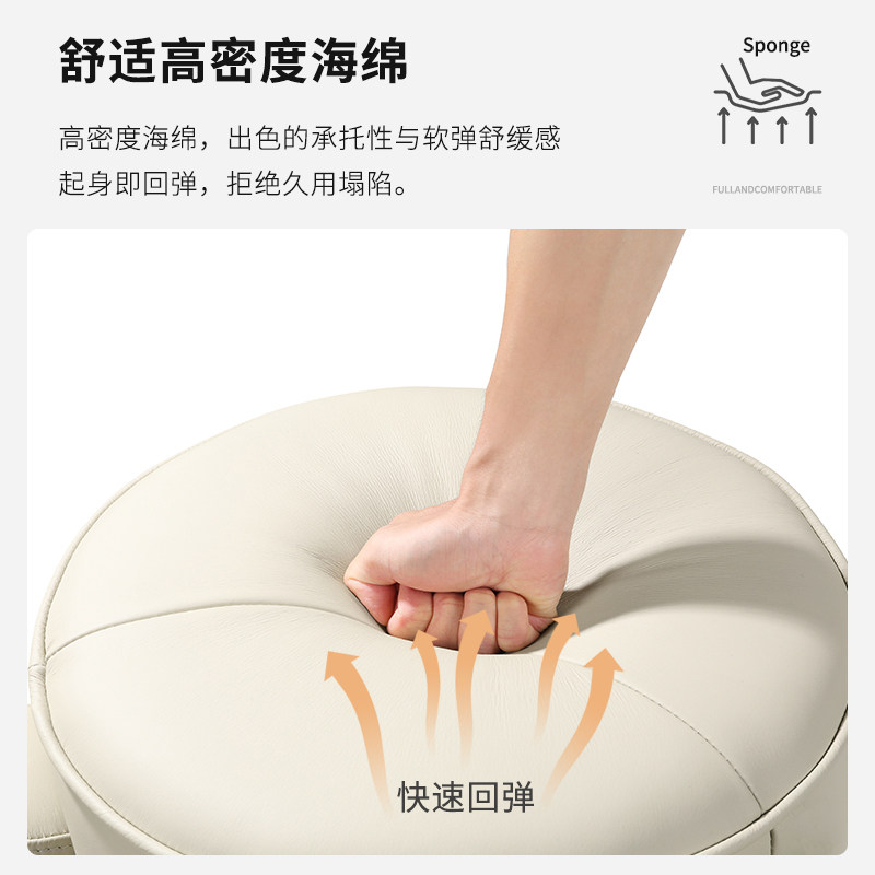 意式轻奢真皮鼓包圆凳 头层牛皮纽扣拉扣沙发凳 客厅床边凳换鞋凳