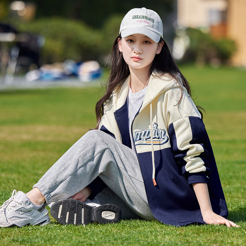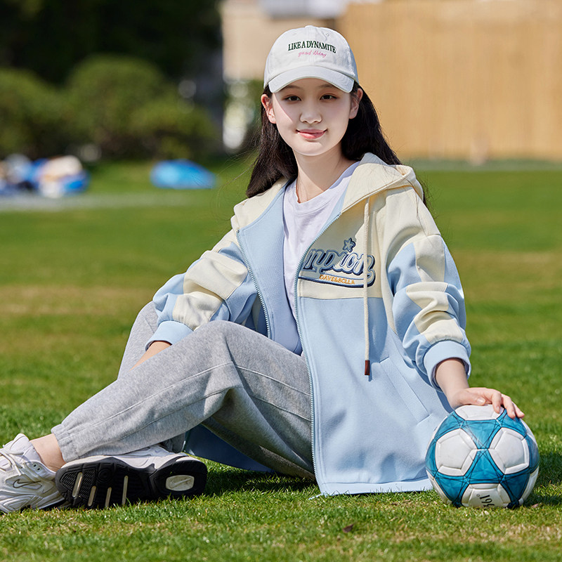初中学生秋冬装外套高中女孩衣服2025秋装新品绣花撞色学院风外衣