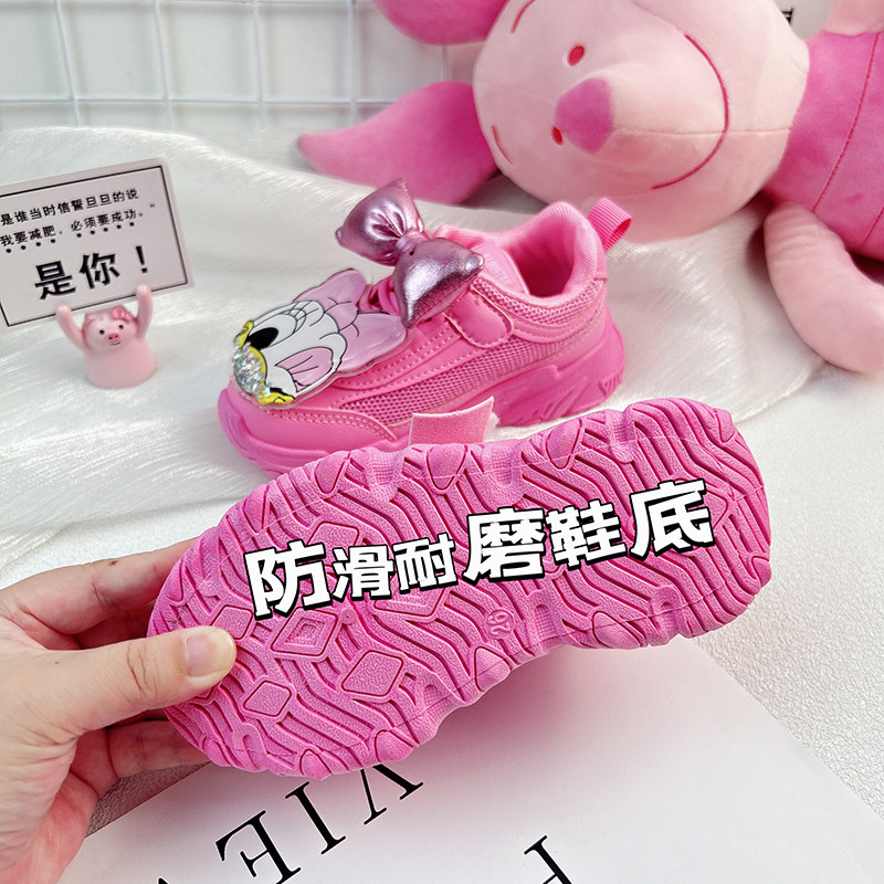 玫红儿童运动鞋软底女童2026春季新款春秋款休闲春鞋春款皮面防水