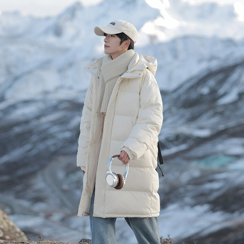 美式白鸭绒羽绒服男士中长款冬季新款大码加厚保暖青少年大鹅外套