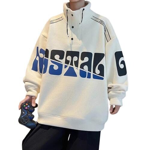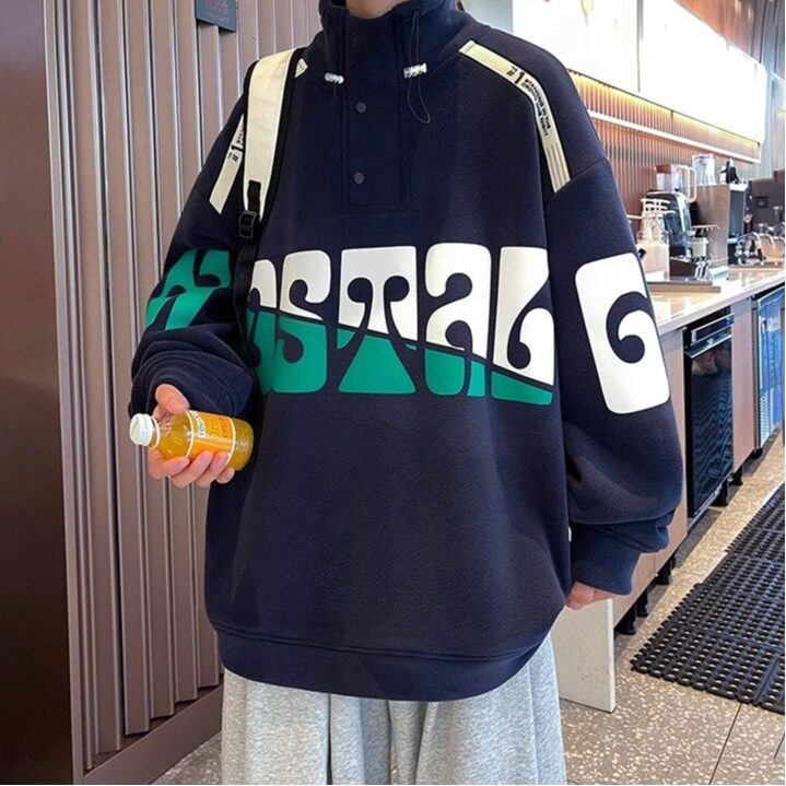 青少年加绒加厚卫衣男款冬季款双面奥粒绒立领保暖初中生学生外套