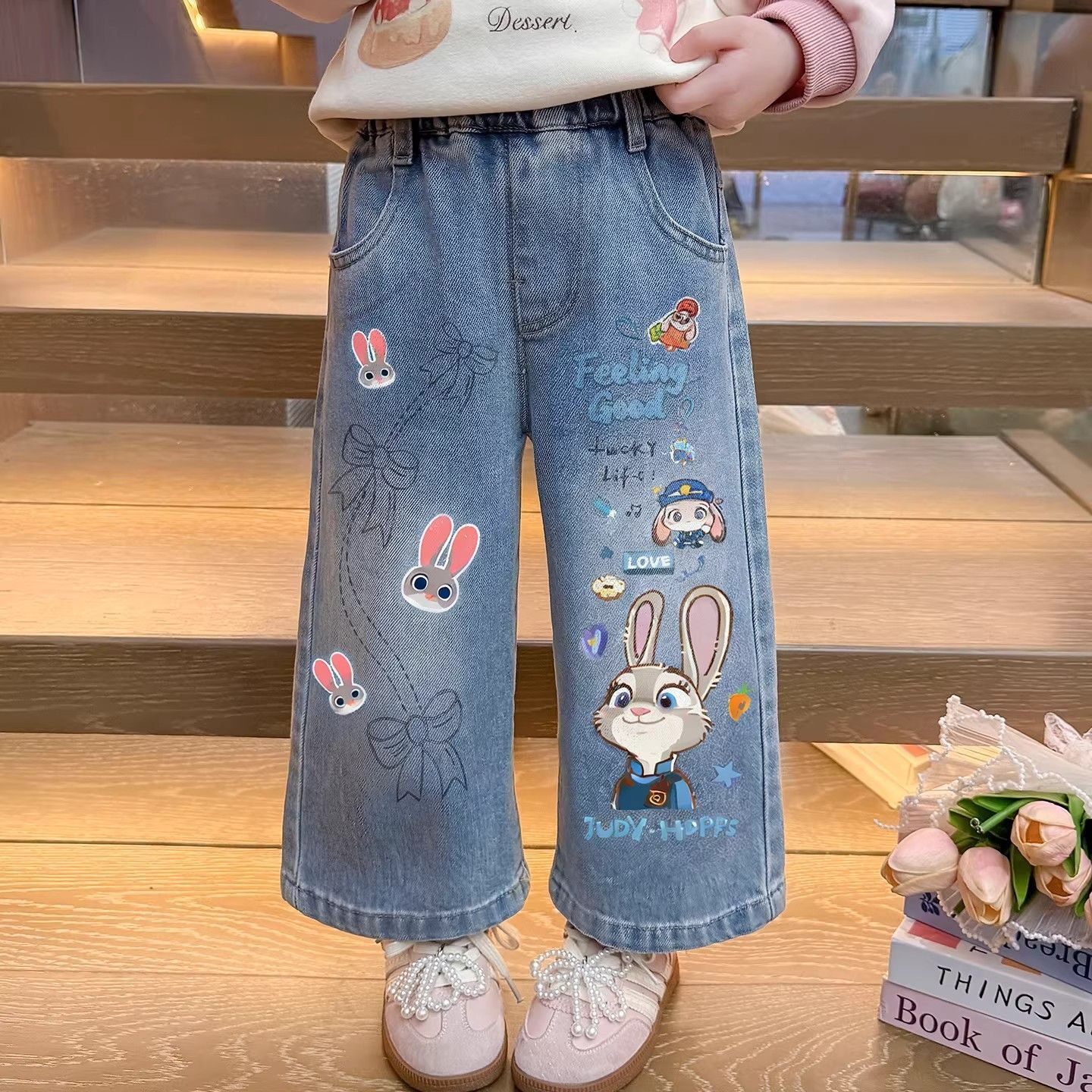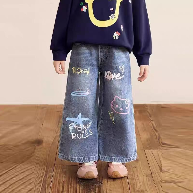 女童裤子春秋季2026新款女孩直筒长裤儿童春装超酷洋气宽松牛仔裤