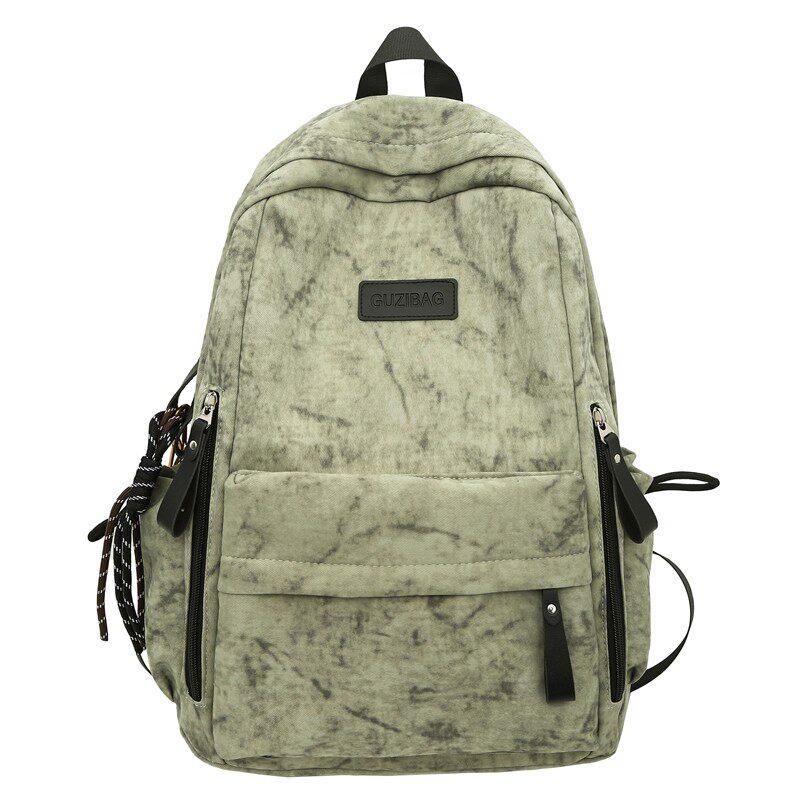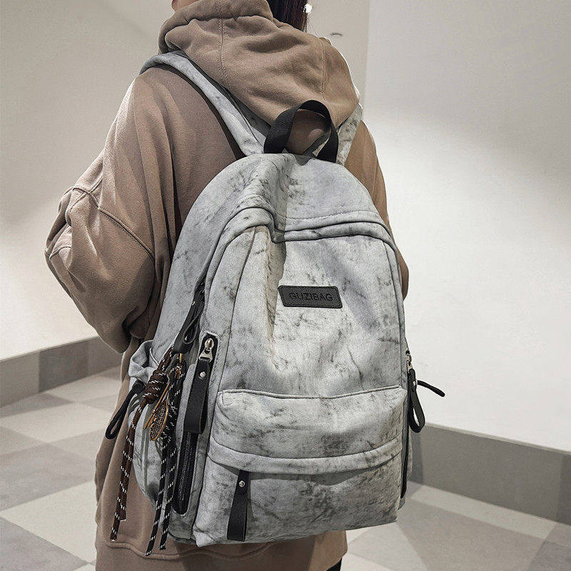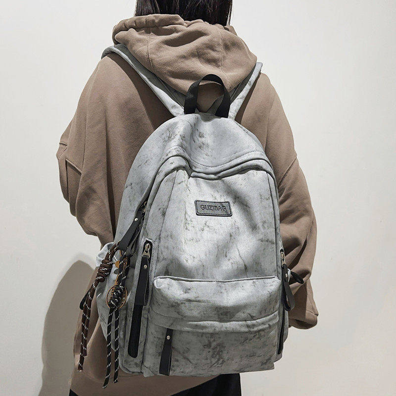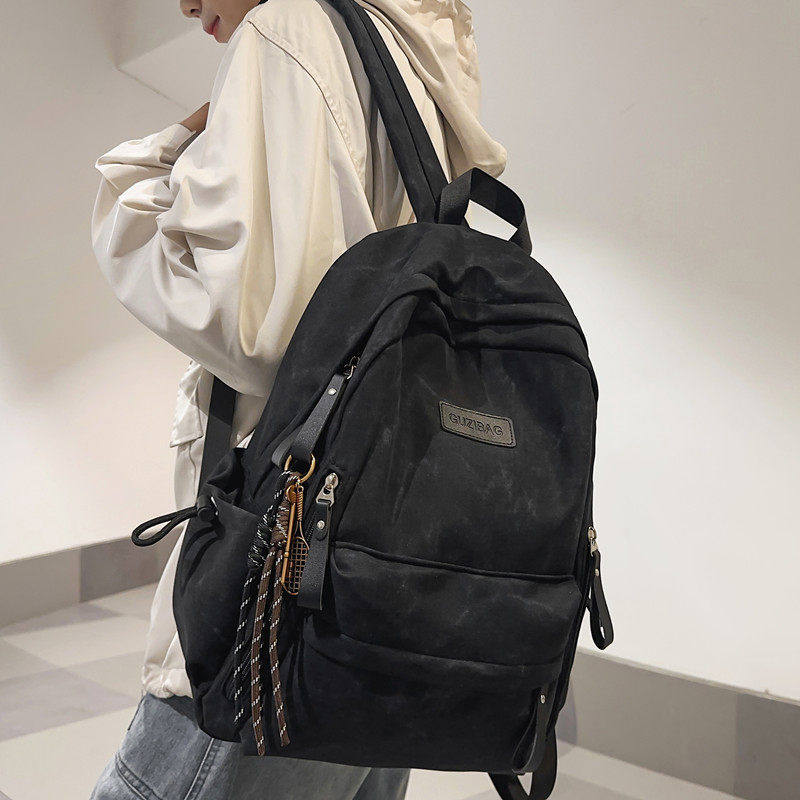 简约百搭双肩包女高中学生初中生书包大容量背包男潮绿色帆布灰色