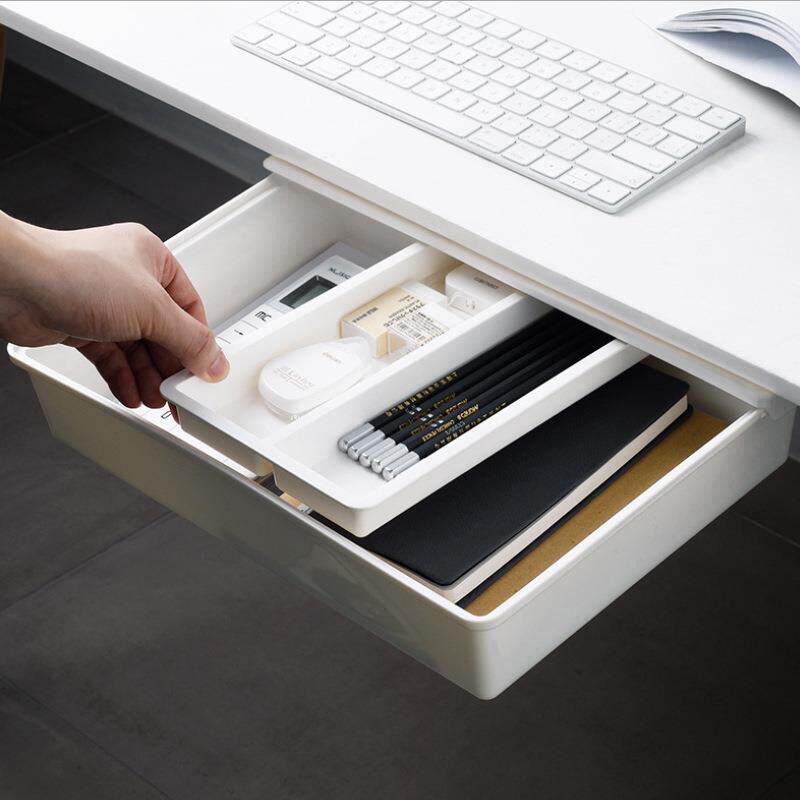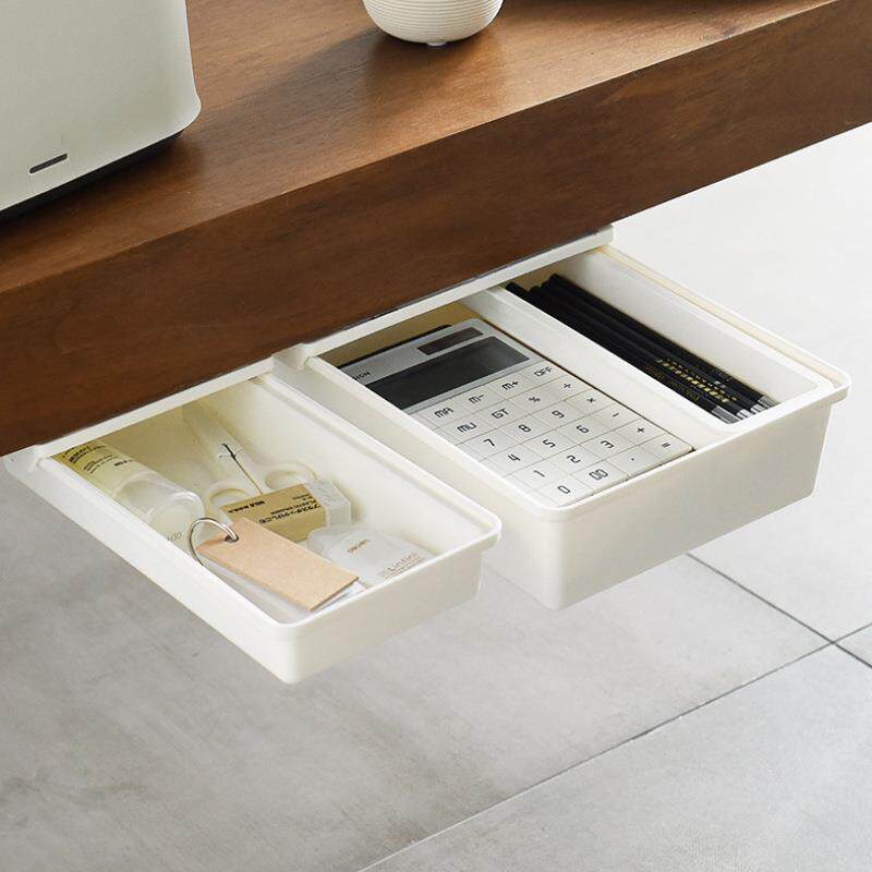 日式免打孔粘贴式橱柜桌下抽屉盒办公桌底隐藏盒抽屉式桌下收纳盒
