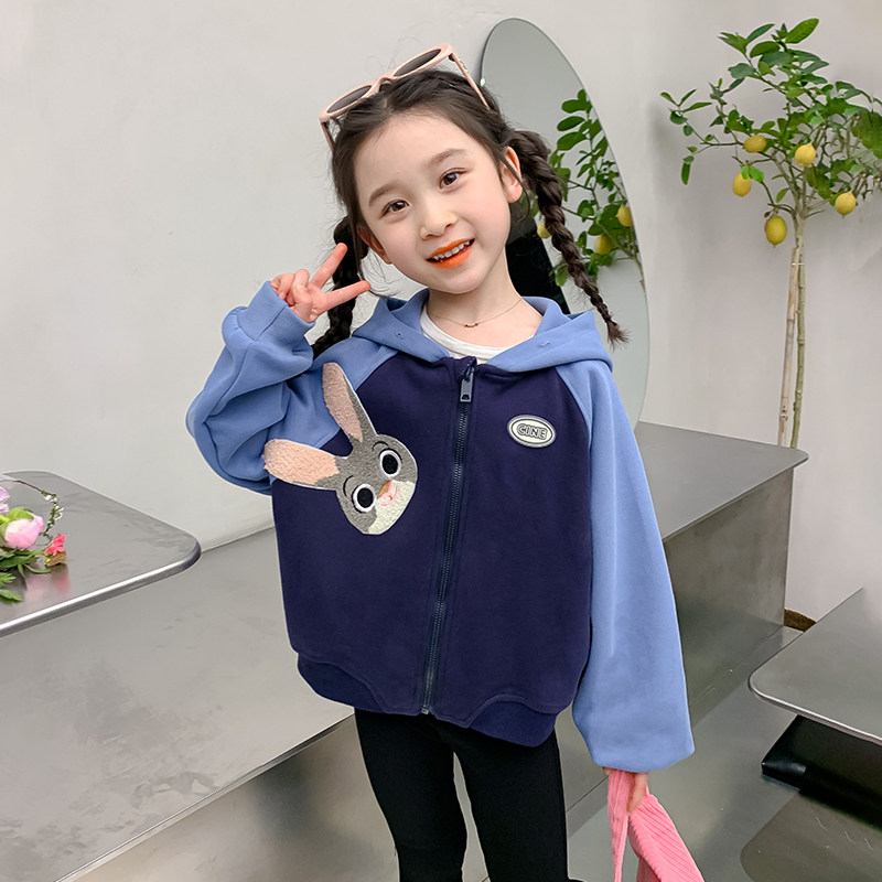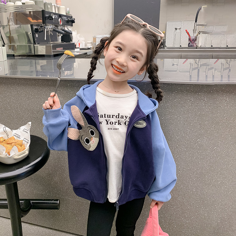 女童春装外套2026新款洋气春季女宝卡通卫衣兔子儿童连帽上衣春秋