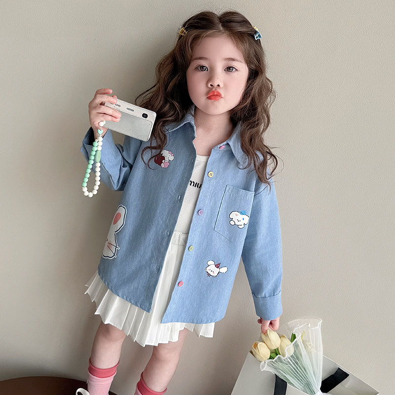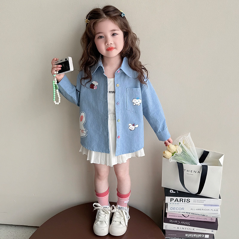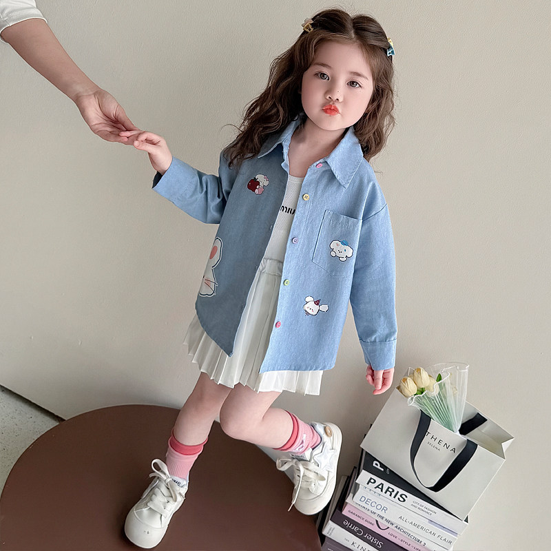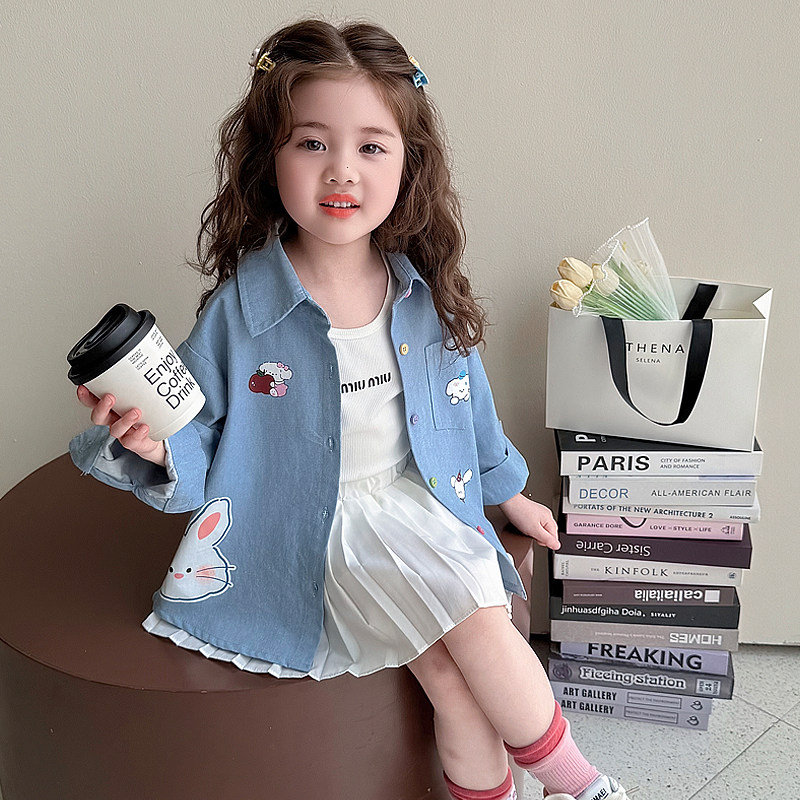 女童牛仔衬衫春秋2026新款儿童衬衣兔子宝宝薄款外套春季春装上衣