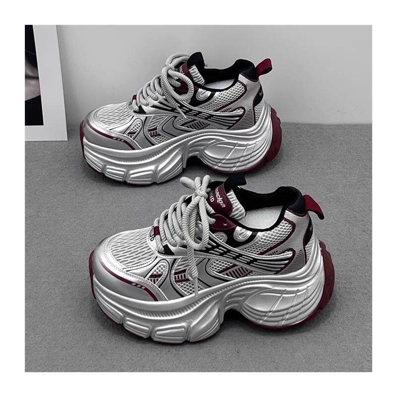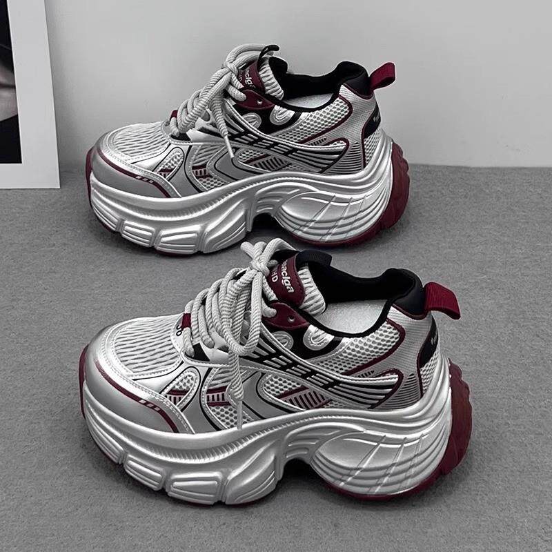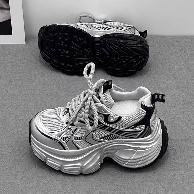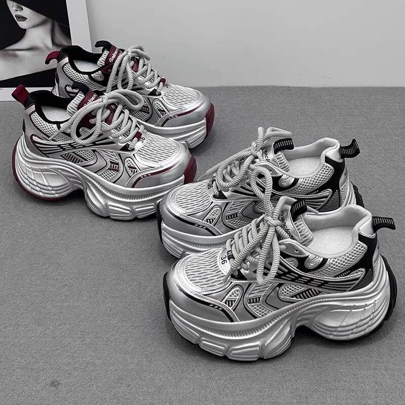 厚底增高老爹鞋女款2025新款春夏季小个子网面银色休闲运动女鞋子