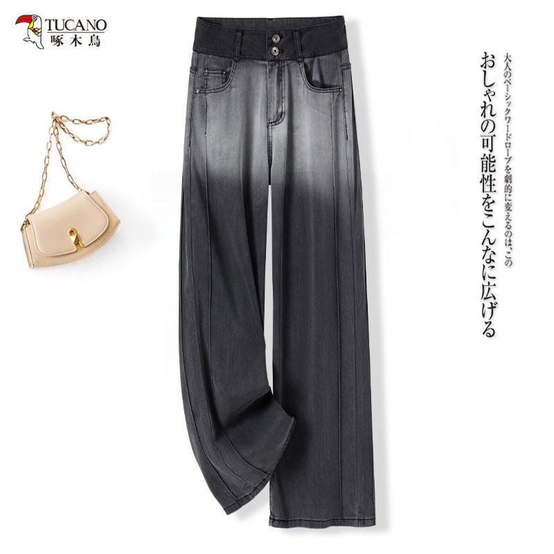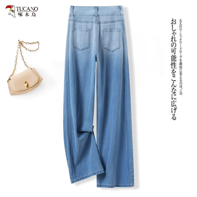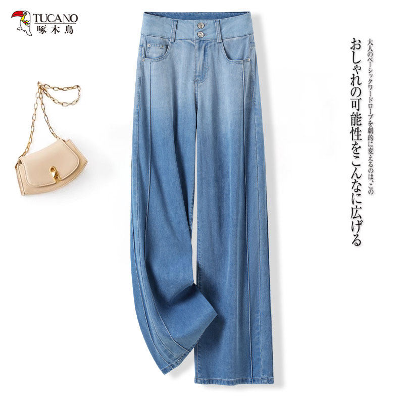 啄木鸟渐变色牛仔裤女款夏季薄款显瘦阔腿裤宽松休闲直筒裤子