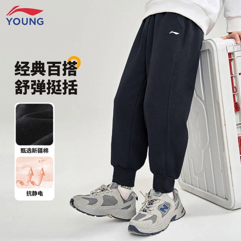 李宁儿童加绒裤子秋冬季新款加厚男女童卫裤青少年长裤保暖休闲裤